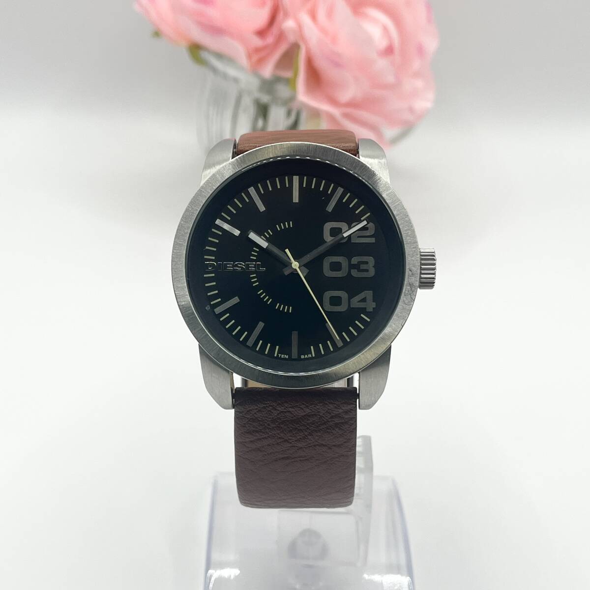 《稼働品》DIESEL★ディーゼル★クォーツ 腕時計★ビッグフェイス★ラウンド型★メンズ★ブラック×シルバー×ブラウン★管理618a