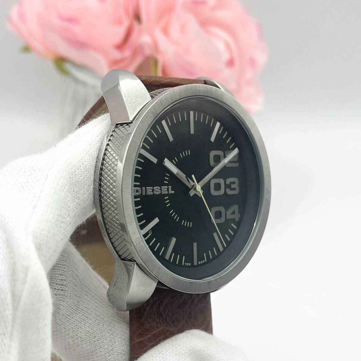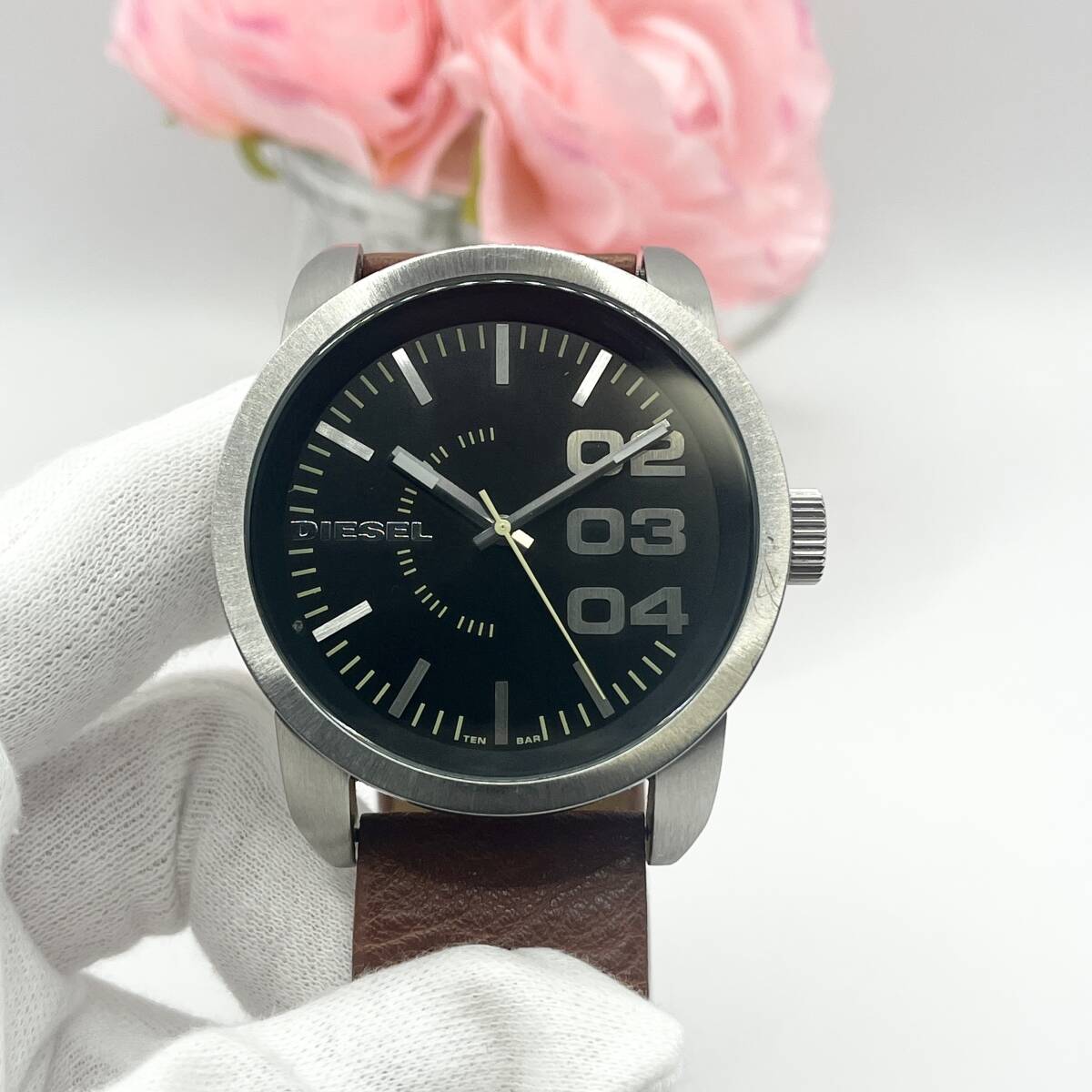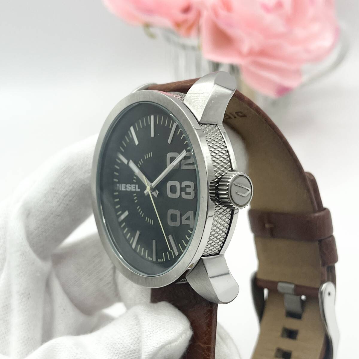 《稼働品》DIESEL★ディーゼル★クォーツ 腕時計★ビッグフェイス★ラウンド型★メンズ★ブラック×シルバー×ブラウンの紹介です!