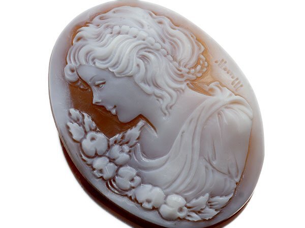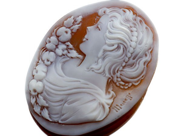 微笑する貴婦人の彫刻が魅力的なシェルカメオルースを激安価格で特別大放出致します!