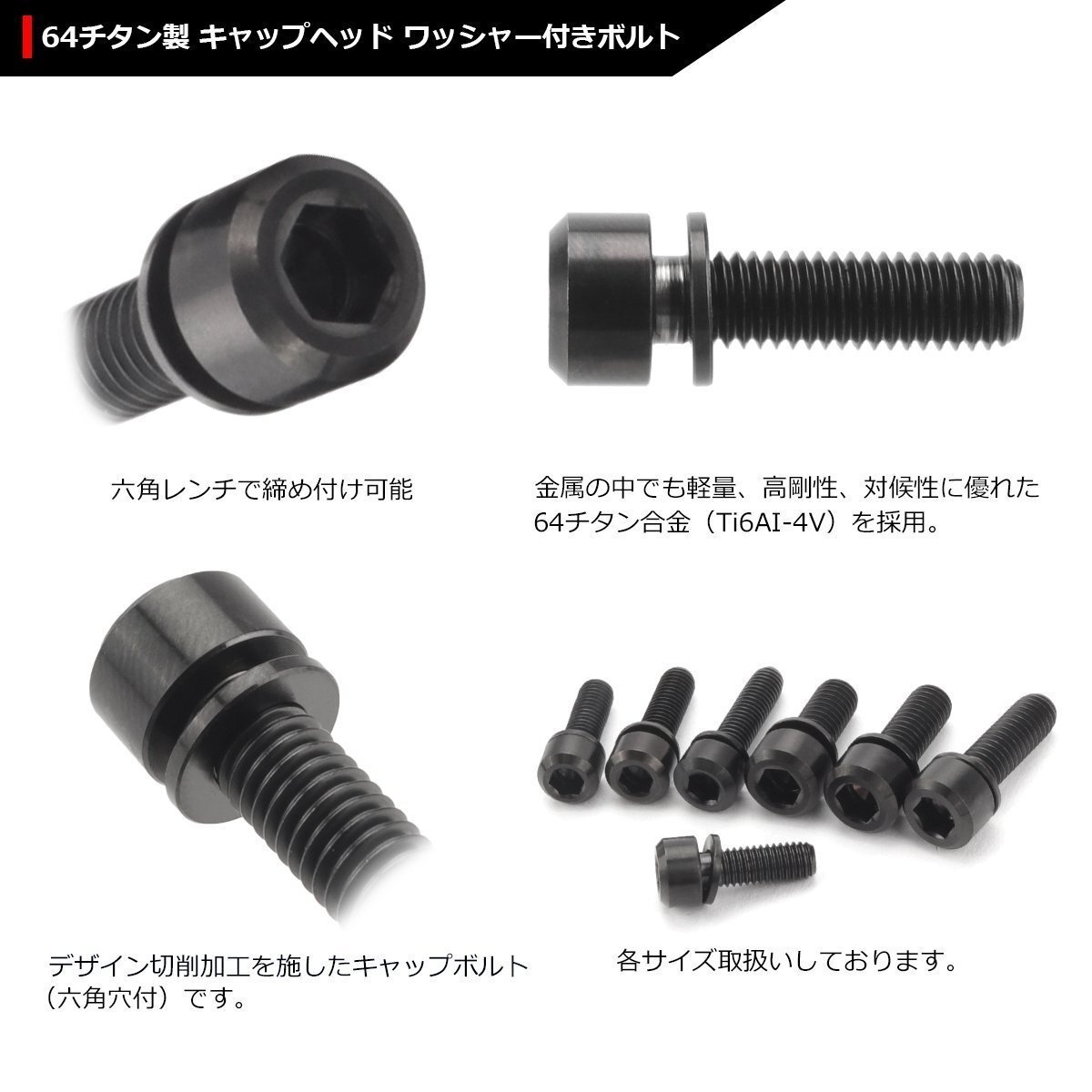 六角穴付き ワッシャー組込 キャップボルト 金属の中でも軽量、高剛性、対候性に優れた64チタン合金(Ti6AI-4V)を採用。 六角穴付きの、ワッシャーを組み込んだ、ドレスアップにも最適なボルトです。 |