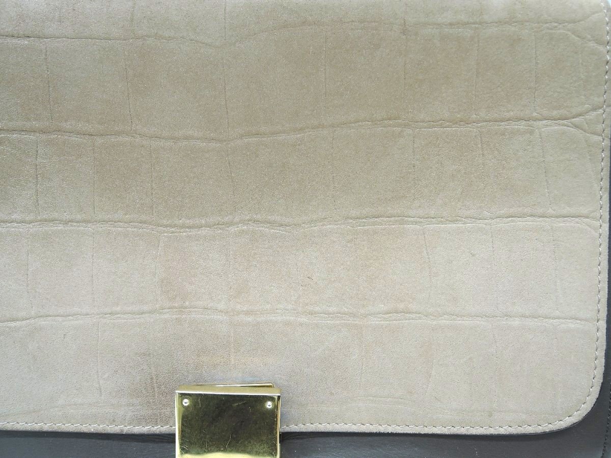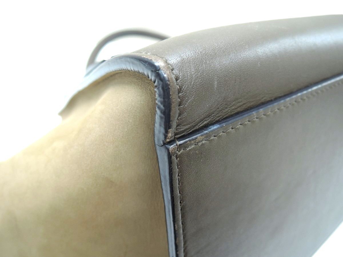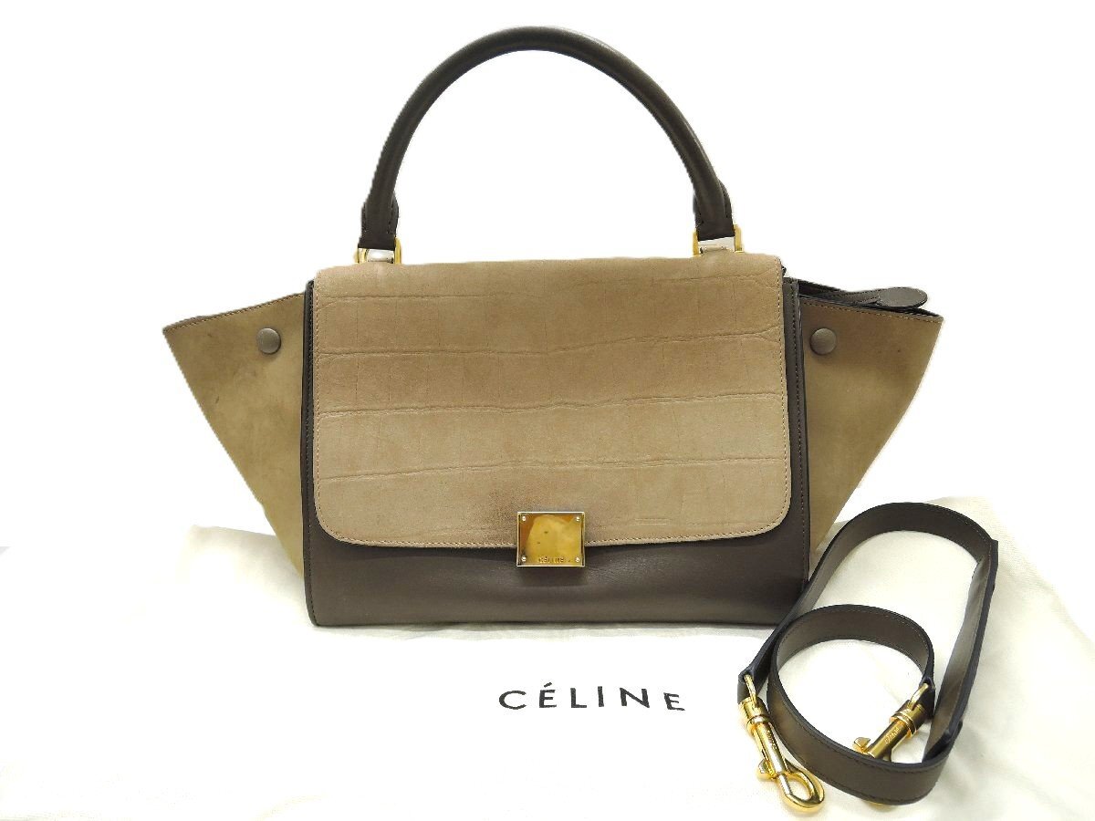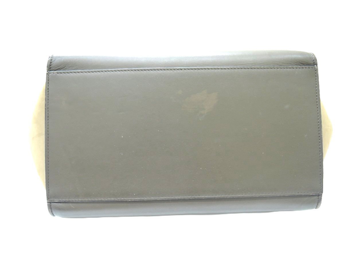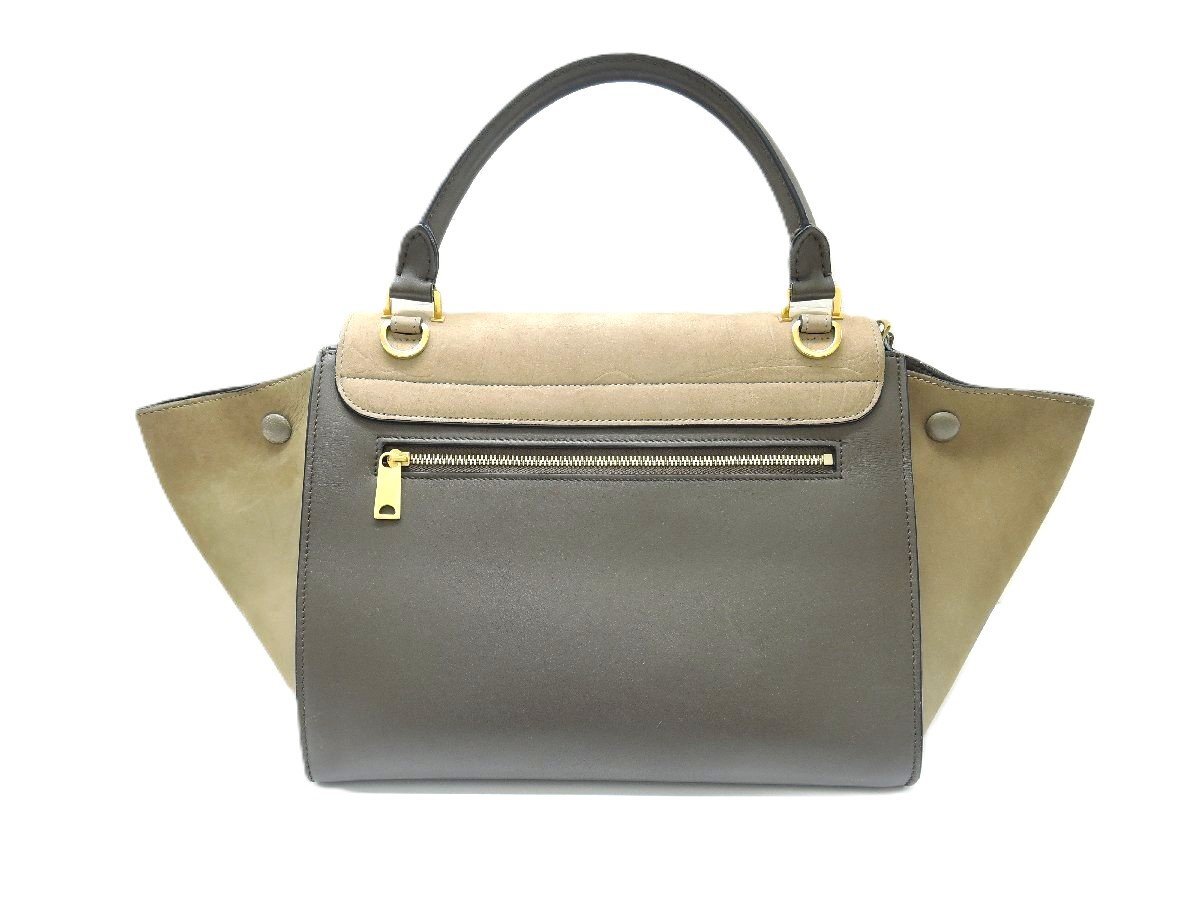 CELINE セリーヌ トラペーズ スモール カーフ スウェード バッグ ベージュ グレー ハンドバッグ 中古 ランクAB BRB・バッグ・財布