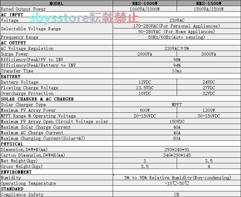 MPPT充電機搭載オフグリッドソーラーインバーター NMS-1.5KW 24V
