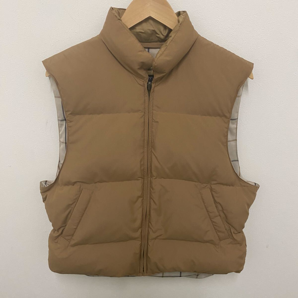 フードのボタンが1つ取れています。また、インナー首周りに小さなシミがあります。