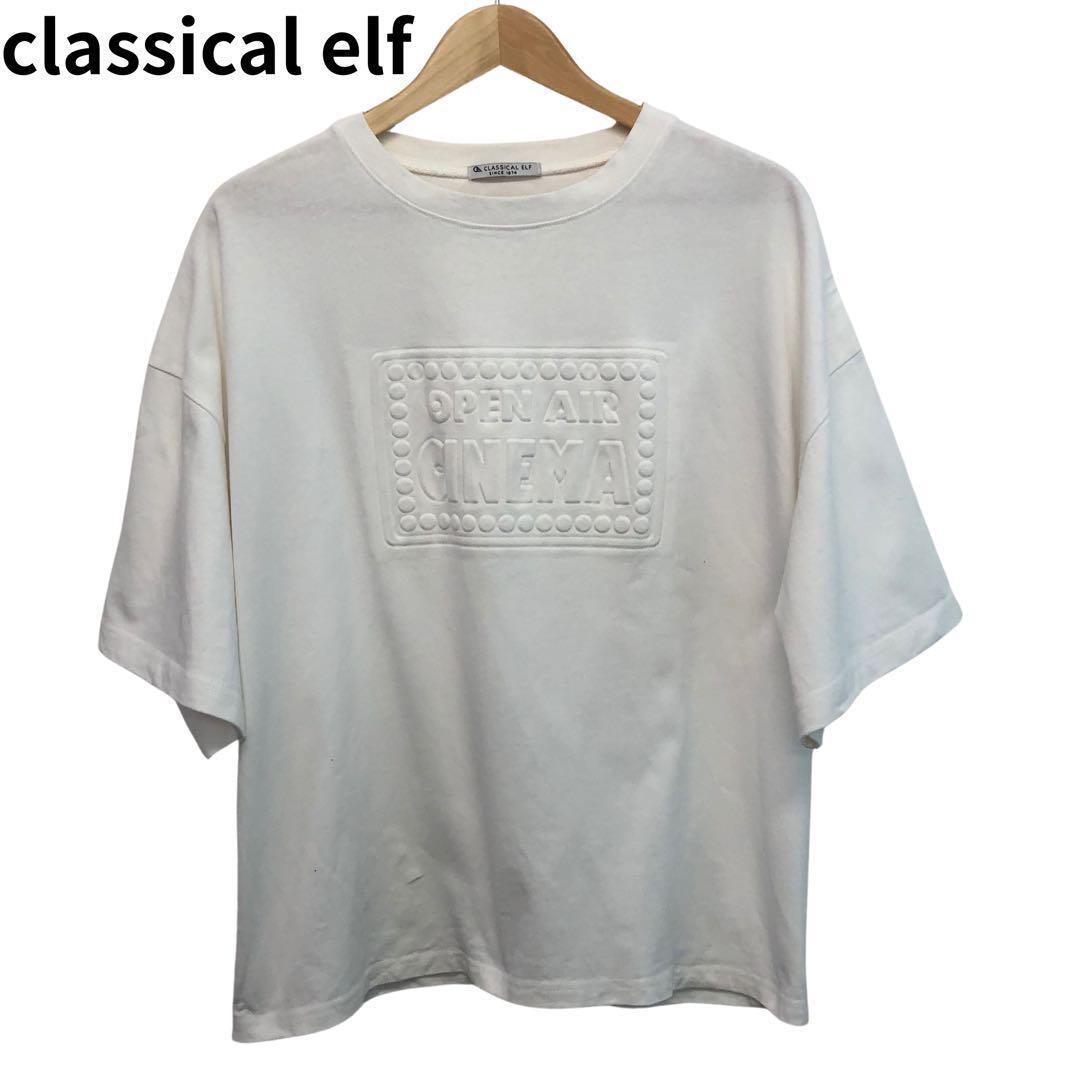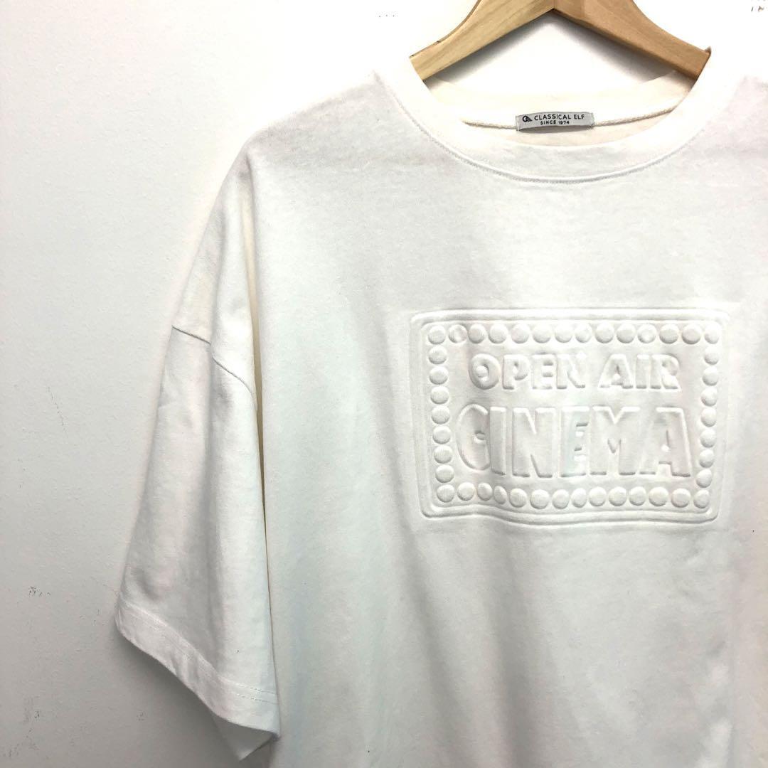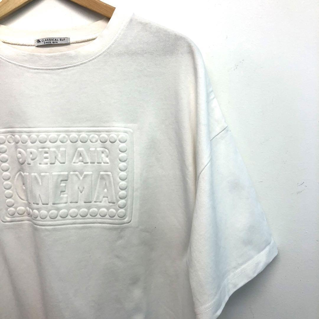 classical elf オープンエアシネマ エンボス Tシャツ ホワイト カジュアル シンプル ロゴ シンプルコーデ カジュアルコーデ オーバーサイズ