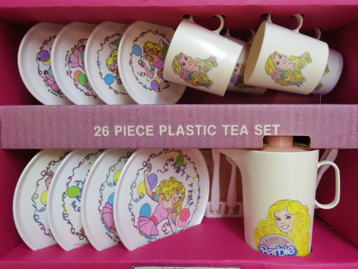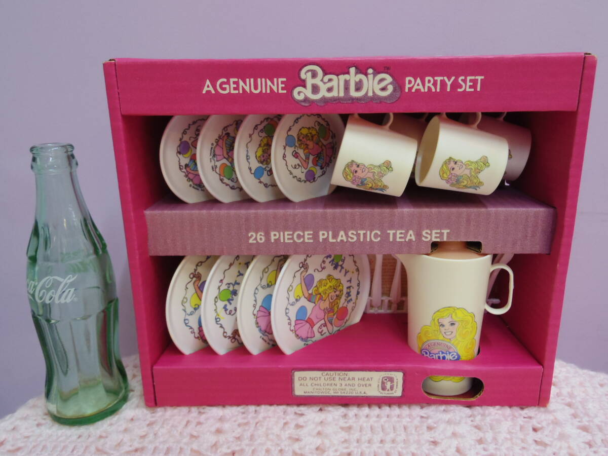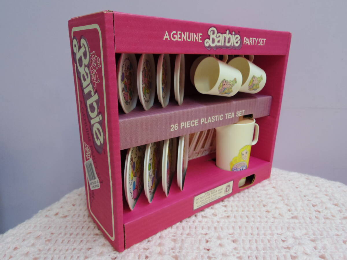 1983年マテル社製、アメリカで売られていた、バービーのパーティセットです。 プラスチック製の食器やカトラリーが計26点セットになります。
