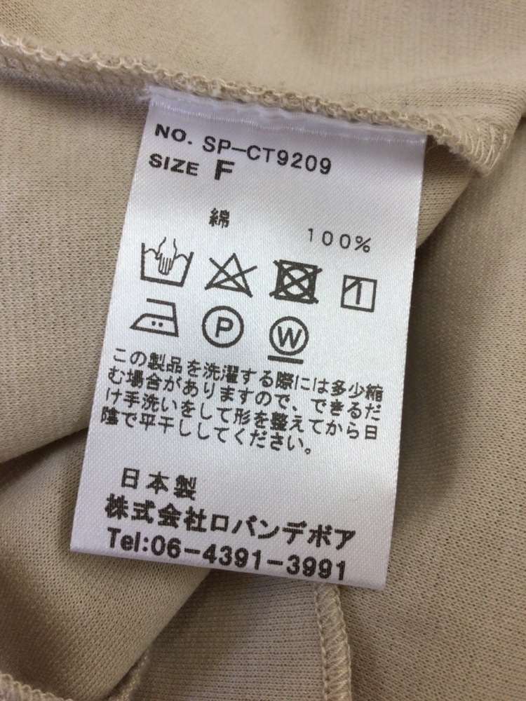管理番号:131245 SPOOL by B&H 薄めベージュのTシャツ 裾広い 表示サイズ:F 実寸(参考)