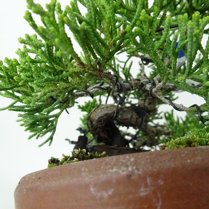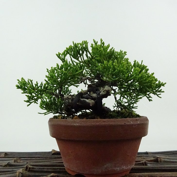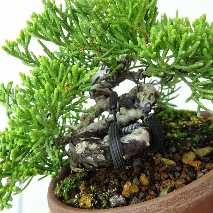 ■植物ですので撮影時期や季節によって剪定などの手入れにより写真から変化がございます。撮影日をご確認のうえ、ご注文ください。 ■年に一度、冬頃にジン・シャリのお手入れをおこなっています。薬品の関係で黄色く変色しているようにみえる場合がありますが徐々に薄れていくので問題はありません。 【真柏盆栽】 シンパクの1番の特徴と言えば、短く締った紐状の葉と、わずかな水吸いでも生き抜くことができる強靱な幹枝です。自然界では積雪や強風などで押しつぶされ木部が露出し、朽ちて白骨化したものが見られます。枝の一部が白骨化したものを神(ジン)、幹の場合は舎利(シャリ)といいます。 |