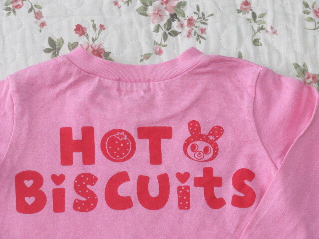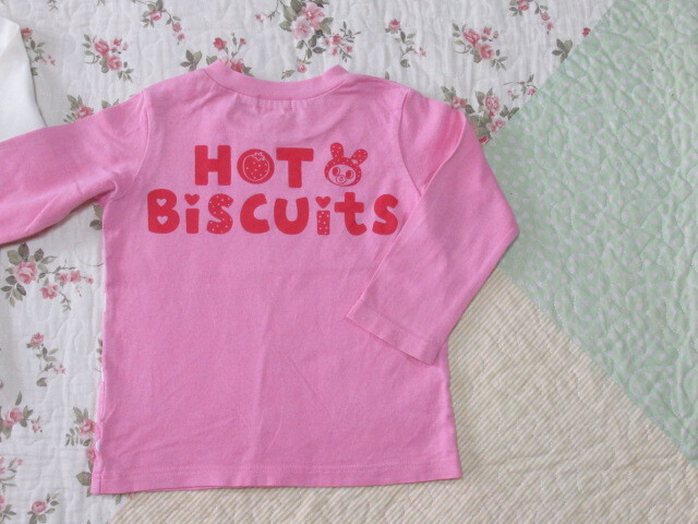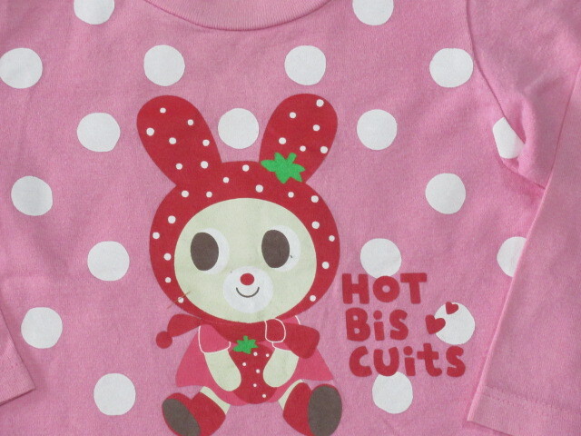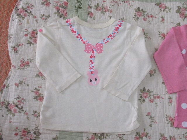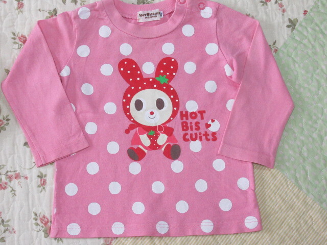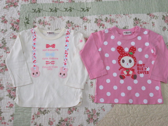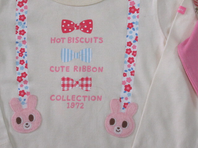 ミキハウス80cmウサギのサスペンダー白&苺ピンク長袖T2*送料185円