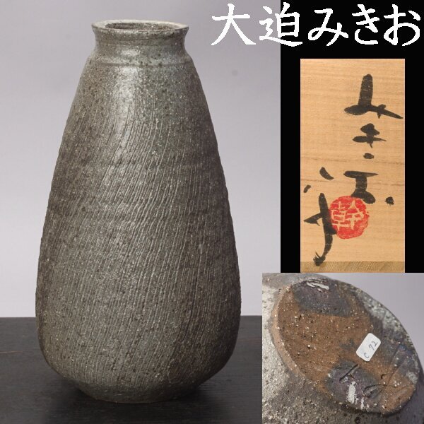 | 常滑・桧原窯、大迫みきおの忍釉花入。共箱あり。 サイズは、高さ約26cm、幅約14cmです。 傷・直しございません。 |