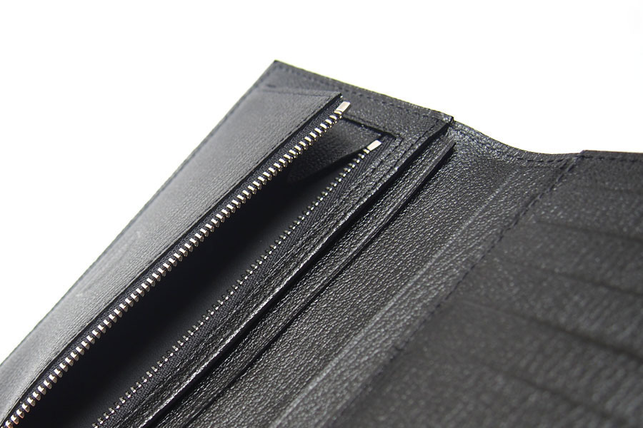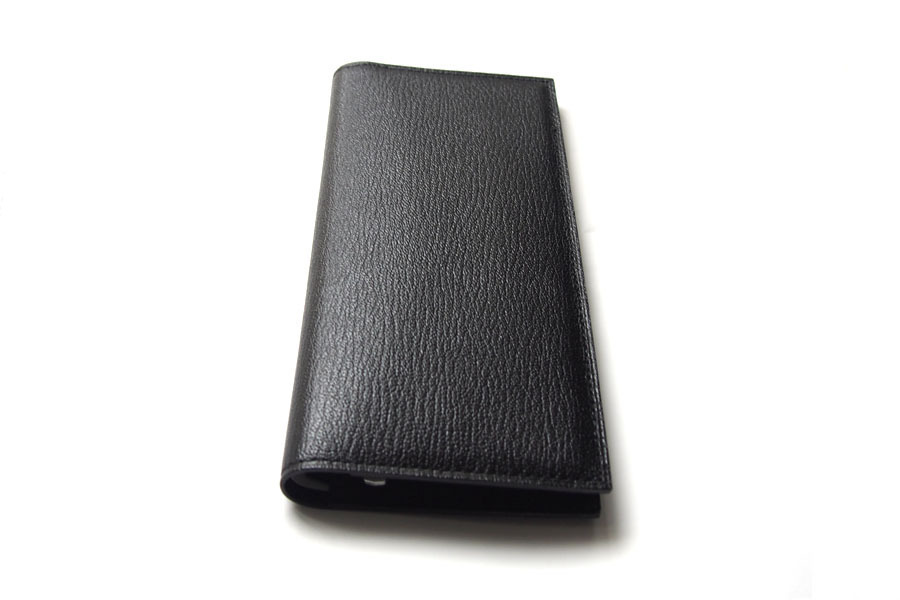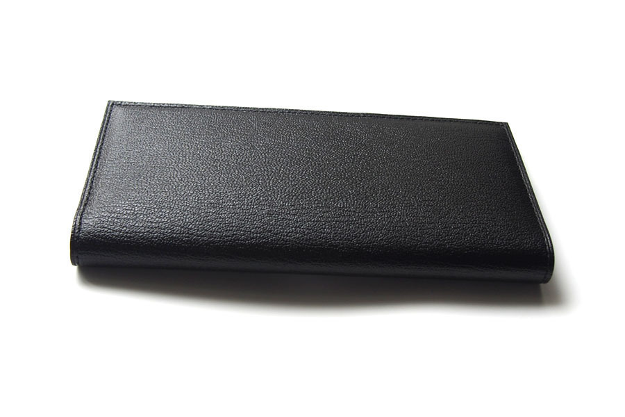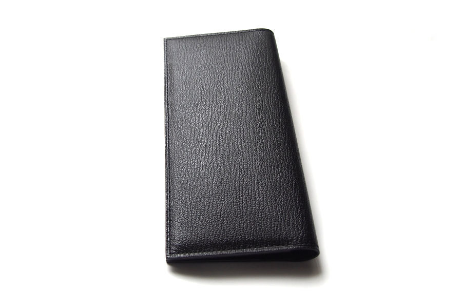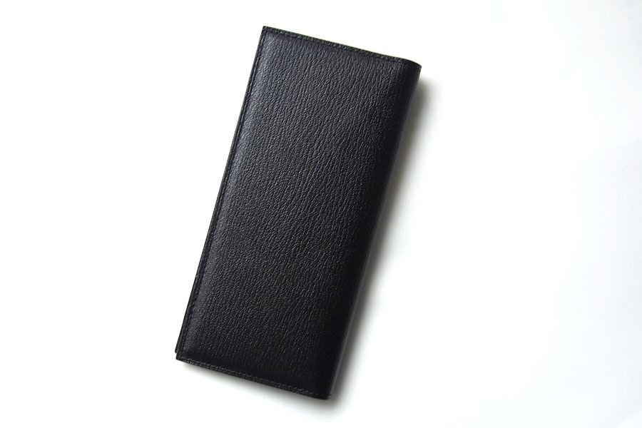フランスの高級老舗タンナー「アルラン」社の型押しゴートレザーが採用されたシンプルな長財布。