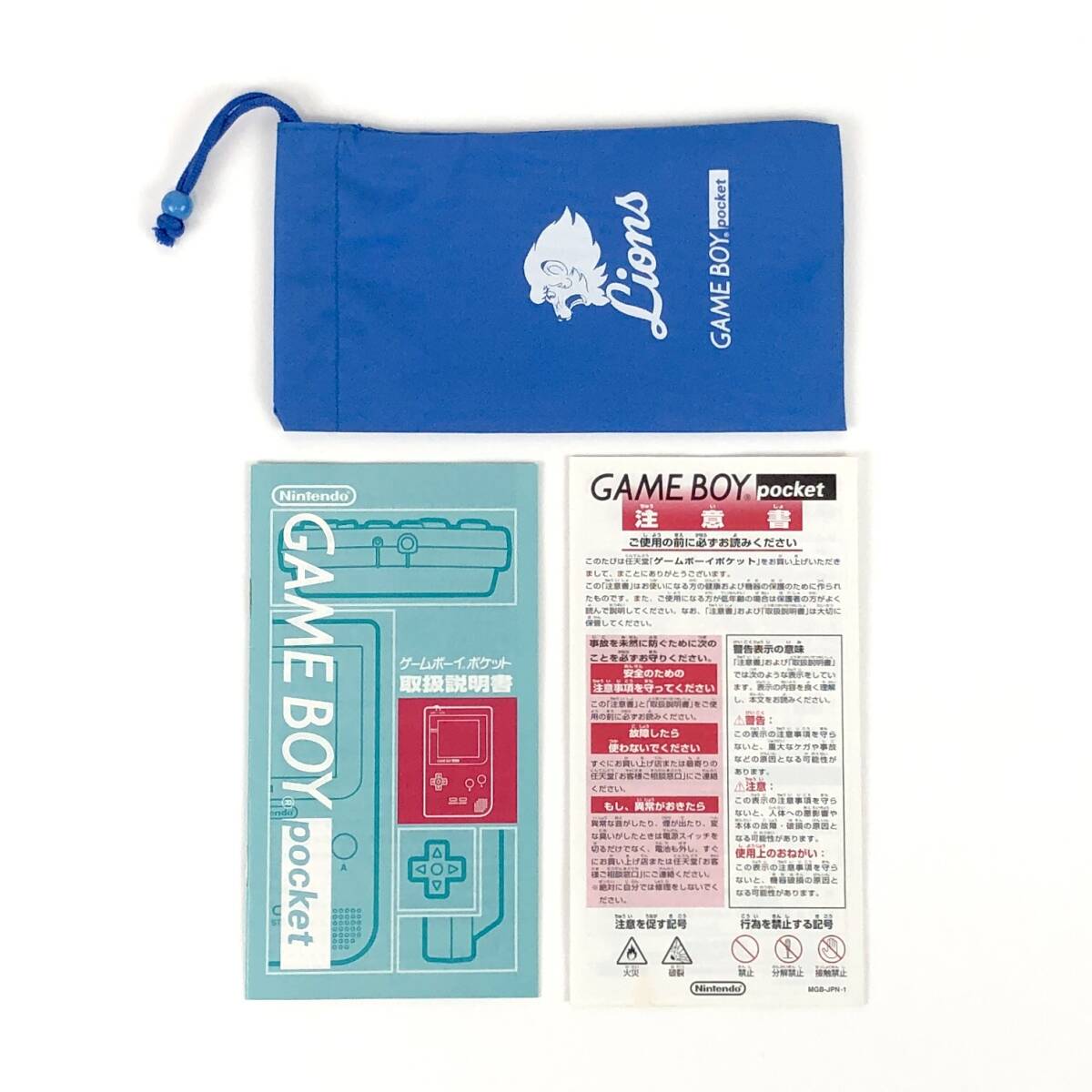 ■ 出品商品は「任天堂 ゲームボーイポケット本体 西武ライオンズ バージョン 箱説・ポーチ付き 液晶痛み有 動作確認済み」になります。