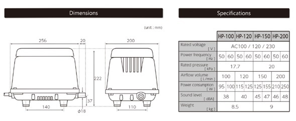 【新品未使用品】HP-100【230V仕様】 エアーポンプ HP-100 テクノ高槻 1年保証付 送料無料