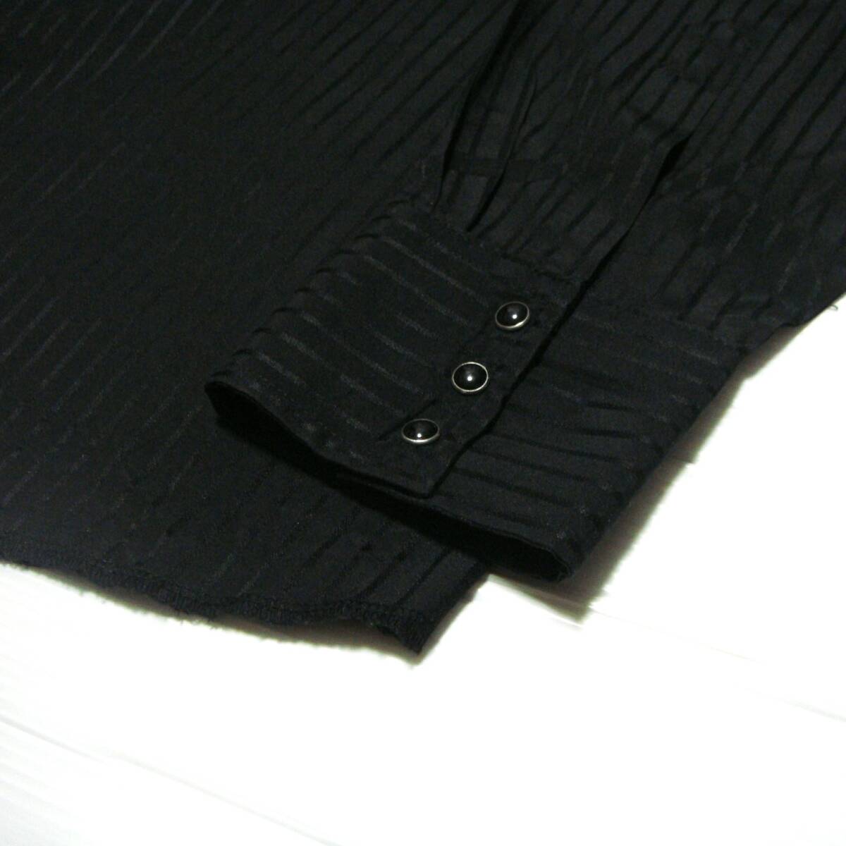 【 見てくださり 感謝します 】 【ブランド】 Wrangler / ラングラー ウエスタンの老舗 ラングラー ■ RODEO SNAP SHIRT ウエスタンシャツ front and back yokes ■ 織りによるストライプ “ Tone on Tone ” Dobby Stripe 織りが前面に入って、繊細なデザイン つるつるとした手触り。光のあたり具合で織りが見え隠れします ■ USA古着 USA製ではありません v(^-^)v ■ サイズが合う方は、 是非! ゲットしてやって下さい (^-^)v 【表記サイズ】 USA 2XLT2XGA2TGL 日本サイズ 4Lぐらいです。 【実寸】 肩幅 54cm (左肩ステッチ〜右肩ステッチまで計測) 身幅 73cm (脇あたりで計測) 着丈 87cm (バック襟の付け根から計測) 袖丈 68cm (肩からの計測) 素人採寸です。多少の誤差はご了承下さい! 【素材】 コットン 16 % ポリエステル 84 % 【状態】 USED 襟 ・ 袖口にすれはありません。(写真)。 【 見てくださり感謝いたします 】 ↓ クリックして下さい。 ご覧いただければ幸いです。 ■ ウエスタンシャツを主に出品させていただいています。 o9 | ||||