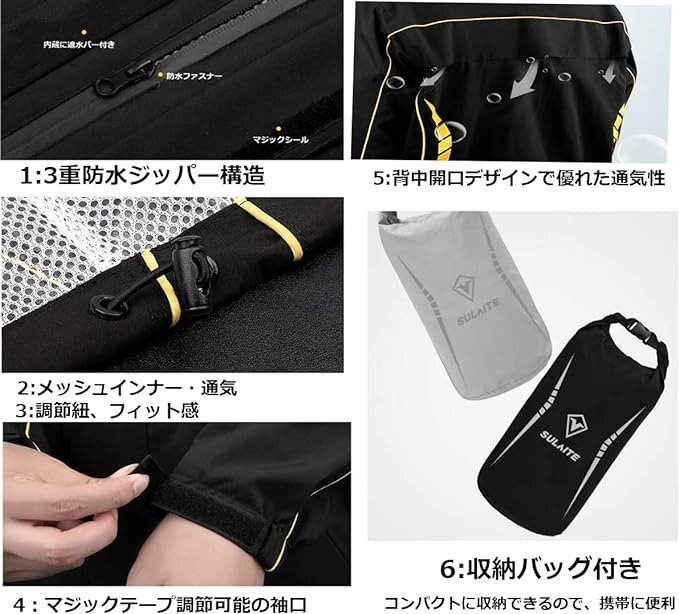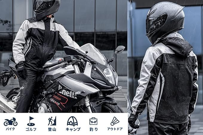 【使いやすい】レインウェアの表面にポリウレタン加工、インナーにメッシュの構造で、蒸れない同時に通気性があるので、雨の日に快適なライディングができます。登山、釣り、バイク、アウトドア、キャンプ、サイクリング、スポーツ、防災など 使用できます。