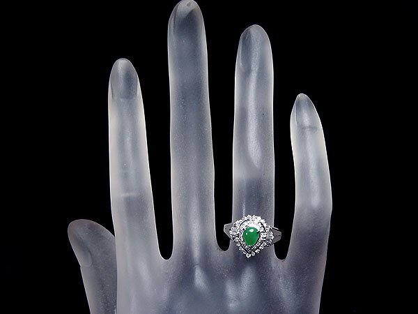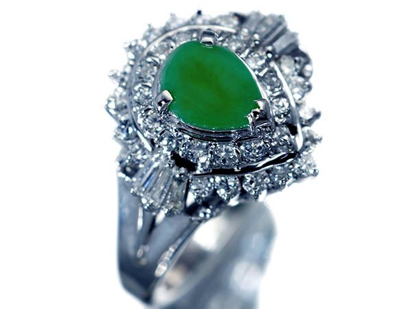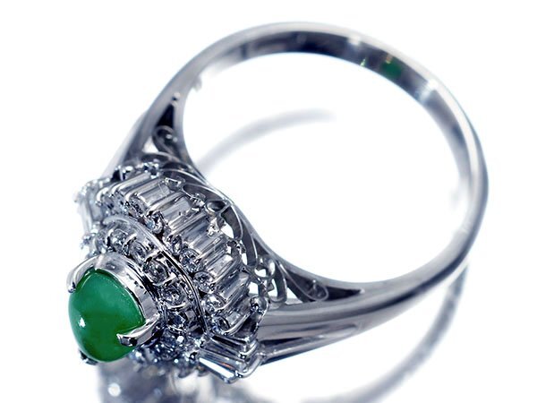 上質な半透明の潤しい色合いが魅力的な、上質天然翡翠&天然ダイヤモンド総計0.34ctを素敵に宝飾した、高級Pt900リングを激安価格で特別大放出致します!