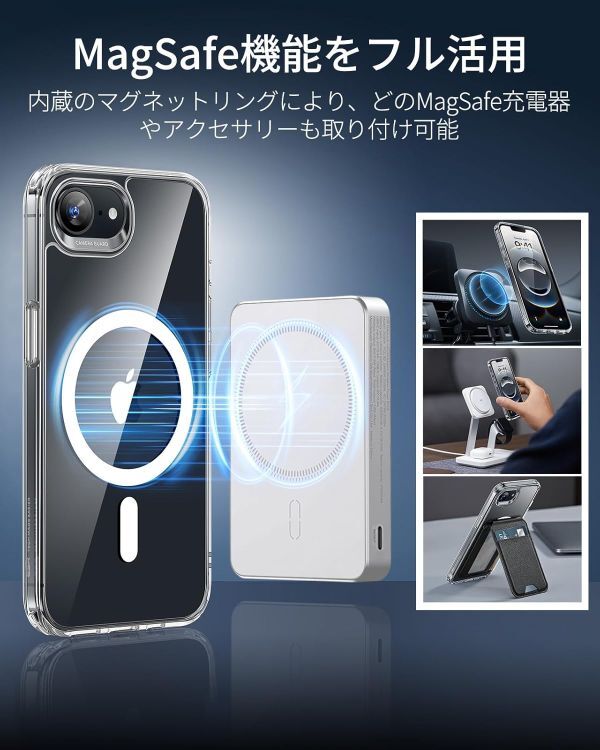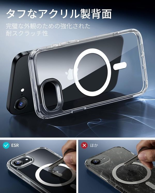 送料無料!☆新品★ESR iPhone 16e ケース【3倍米軍MIL規格・MagSafe対応】 耐衝撃 最大7倍の磁力ロック ワイヤレス充電 クリア