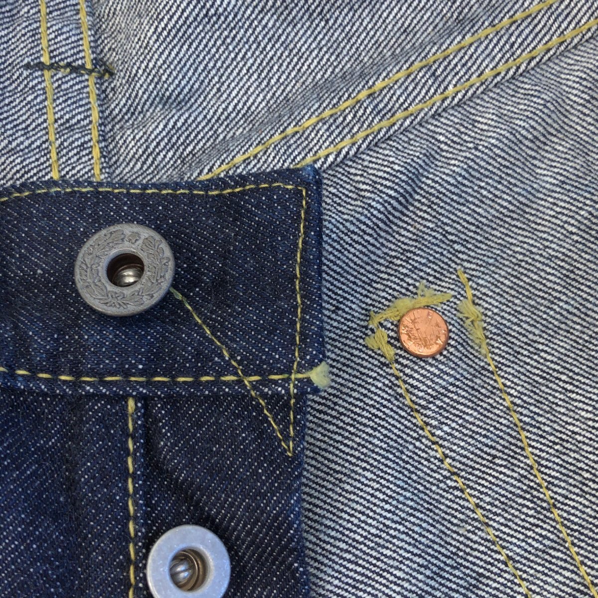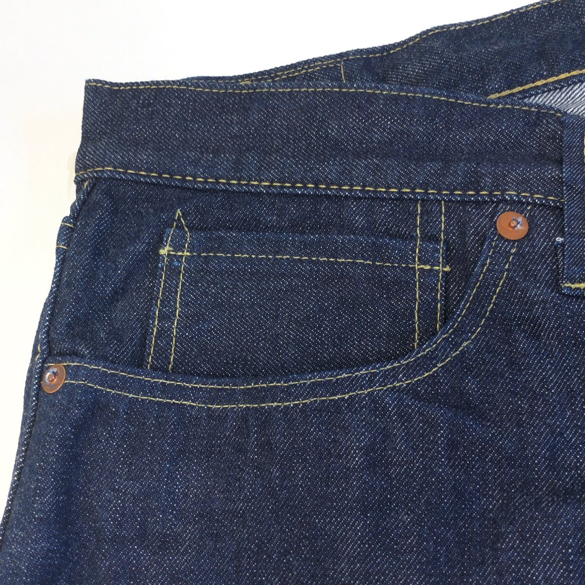 備考:ボタンフライ セルビッチ(黄耳) 裾チェーンステッチ 月桂樹ボタン 三角ステッチ 隠しリベット