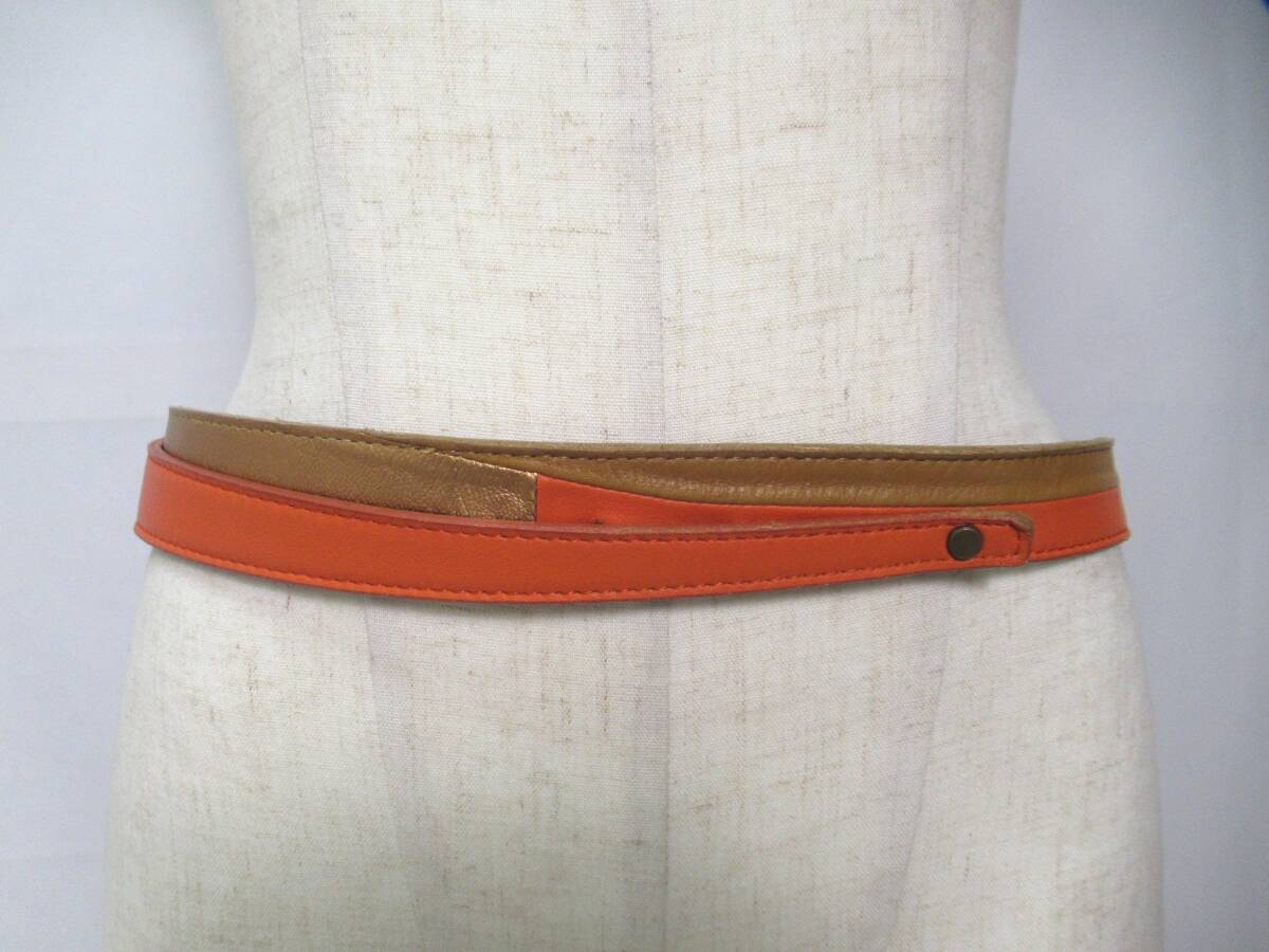 【送900円】880 ISSEY MIYAKE イッセイミヤケ レディースレザーベルト 服飾小物 ファッション小物 日本製 茶×オレンジ
