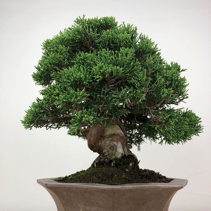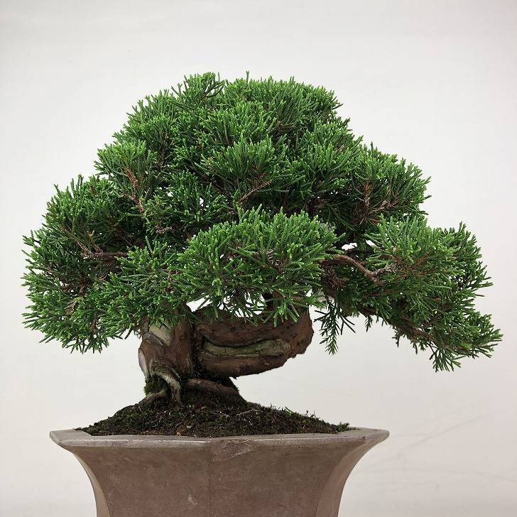 ■植物ですので撮影時期や季節によって剪定などの手入れにより写真から変化がございます。撮影日をご確認のうえ、ご注文ください。 ■年に一度、冬頃にジン・シャリのお手入れをおこなっています。薬品の関係で黄色く変色しているようにみえる場合がありますが徐々に薄れていくので問題はありません。 【真柏盆栽】 シンパクの1番の特徴と言えば、短く締った紐状の葉と、わずかな水吸いでも生き抜くことができる強靱な幹枝です。自然界では積雪や強風などで押しつぶされ木部が露出し、朽ちて白骨化したものが見られます。枝の一部が白骨化したものを神(ジン)、幹の場合は舎利(シャリ)といいます。 |