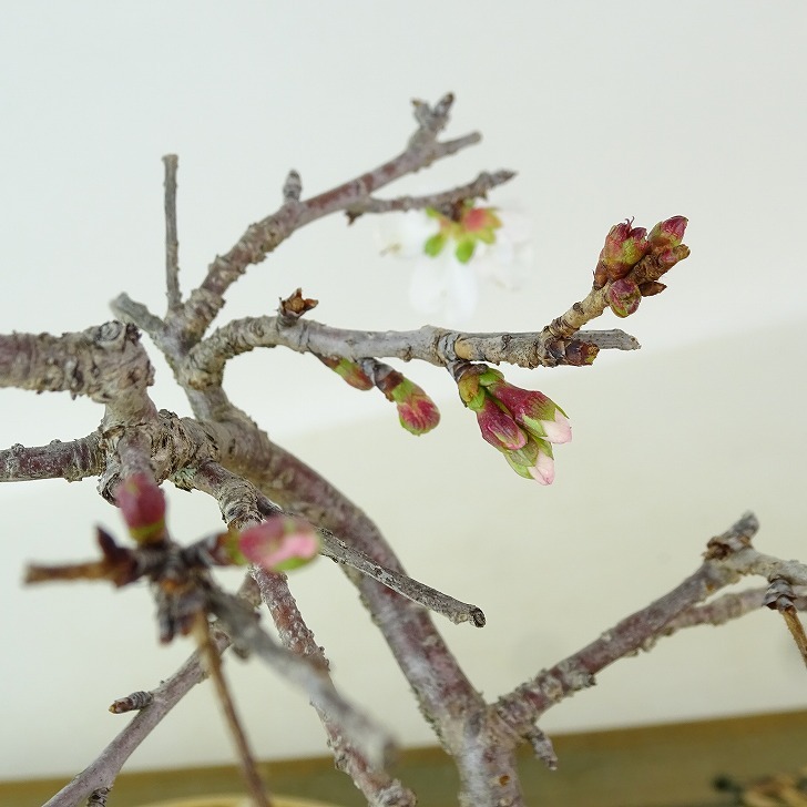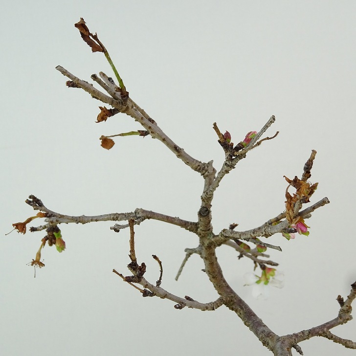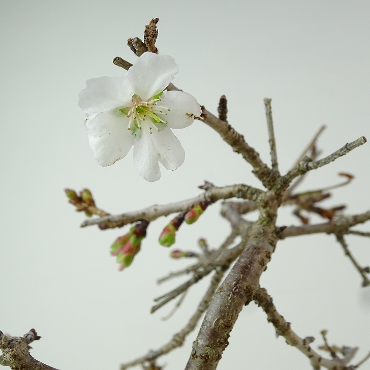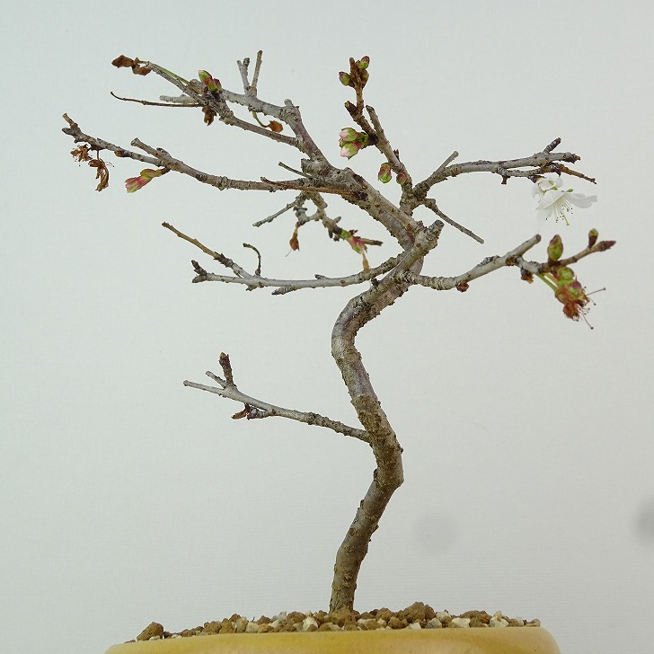 | ■植物ですので撮影時期や季節によって剪定などの手入れにより写真から変化がございます。撮影日をご確認のうえ、ご注文ください。 【桜盆栽】 桜の原種は11種確認されており、これらの変性や交雑、園芸種など数えきれないほど沢山の種類や品種があります。一重咲き、八重咲き、枝垂れなど、日本国内だけでも600種以上が確認されています。 〈信濃寒桜〉 白~淡い桃色の小輪の花。秋頃から春にかけてぽつりぽつり少しずつ開花します。 |
