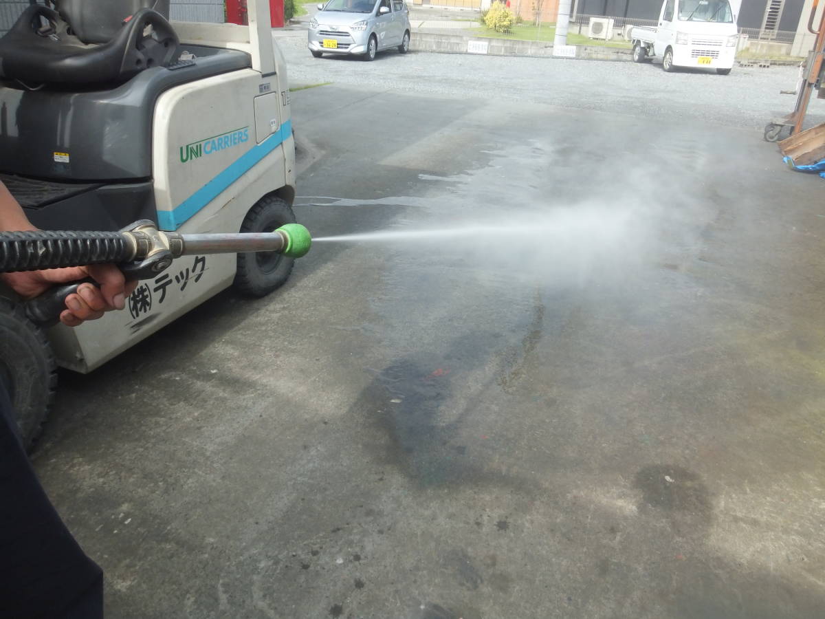噴射ノズルは扇型と直水飛びにガンのハンドルで切り替えできます。