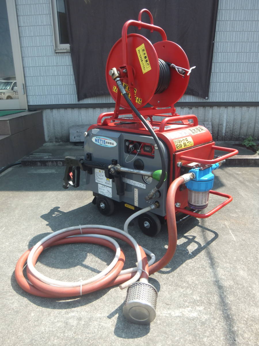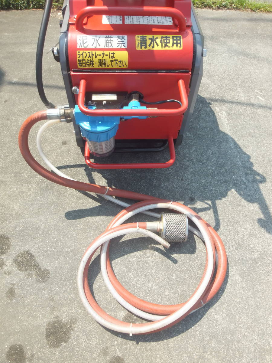 ガン、高圧ホース、吸水ホース、フィルター、余水ホース付きです。ホース20m仕様です。