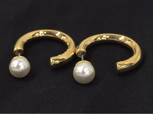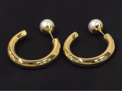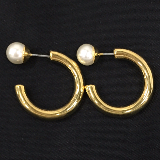 送料360円 ブランド不明 フェイクパール フープ ピアス ゴールドカラー アクセサリー ファッション小物 同梱NG |