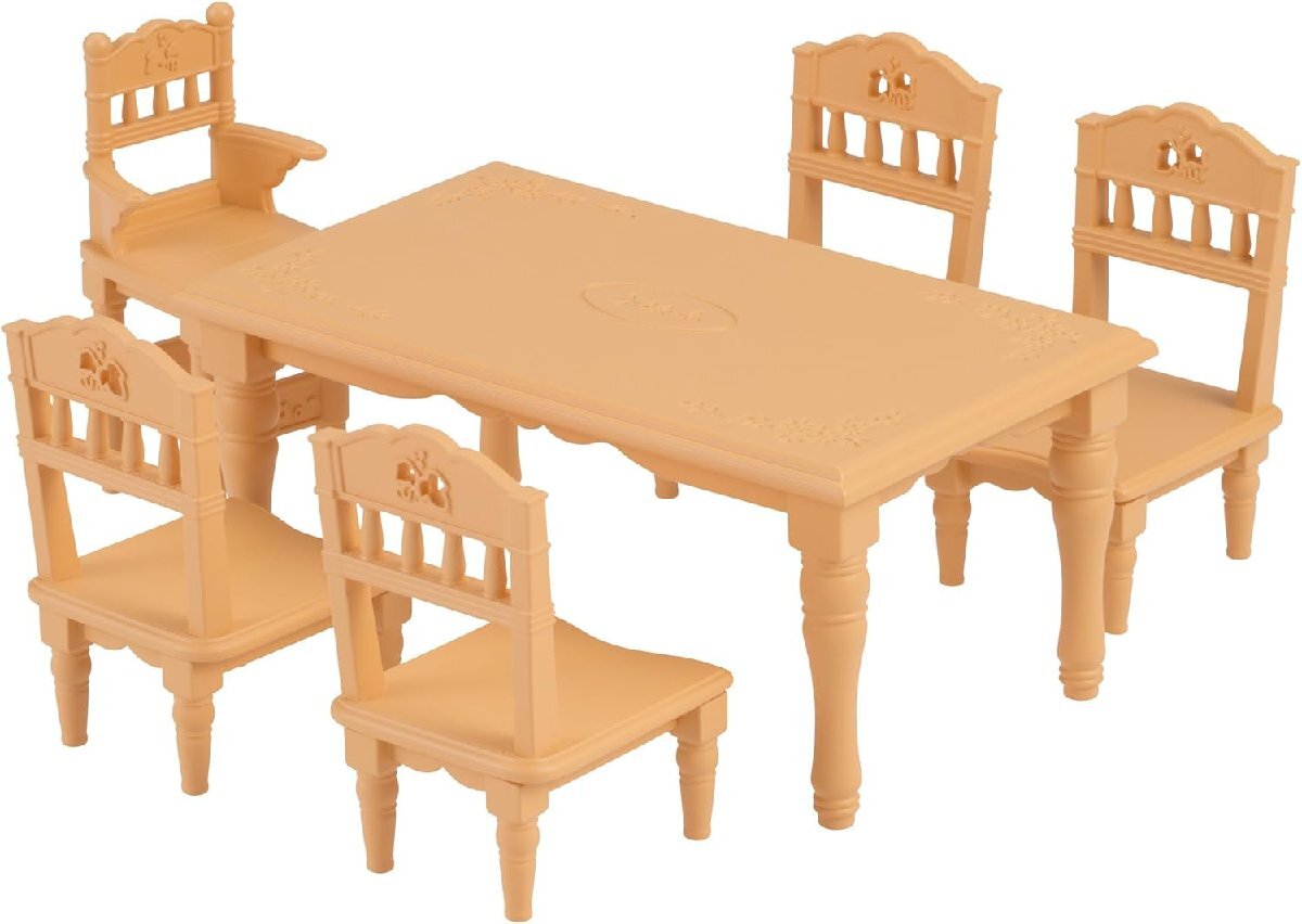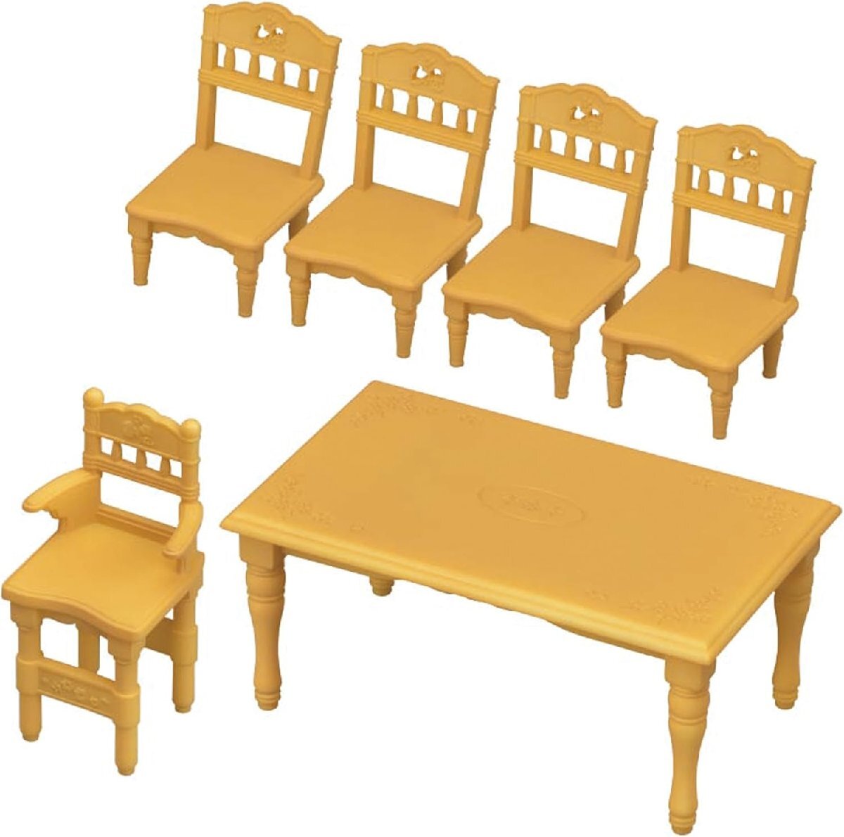 大きなダイニングテーブルとイス、ベビーチェアーのセットです。
