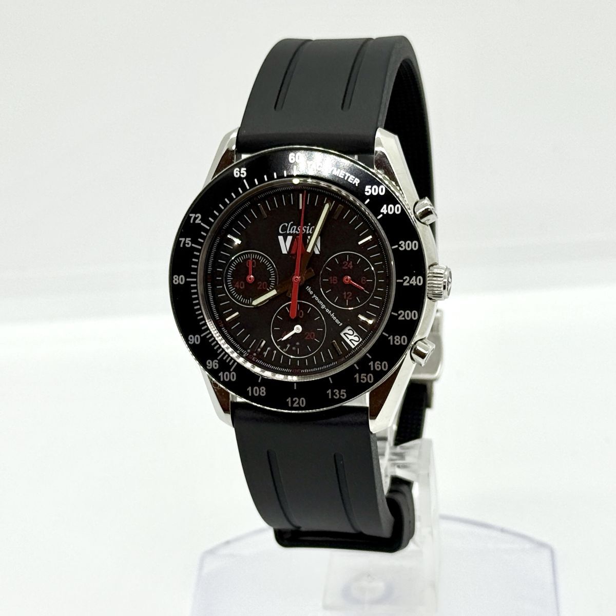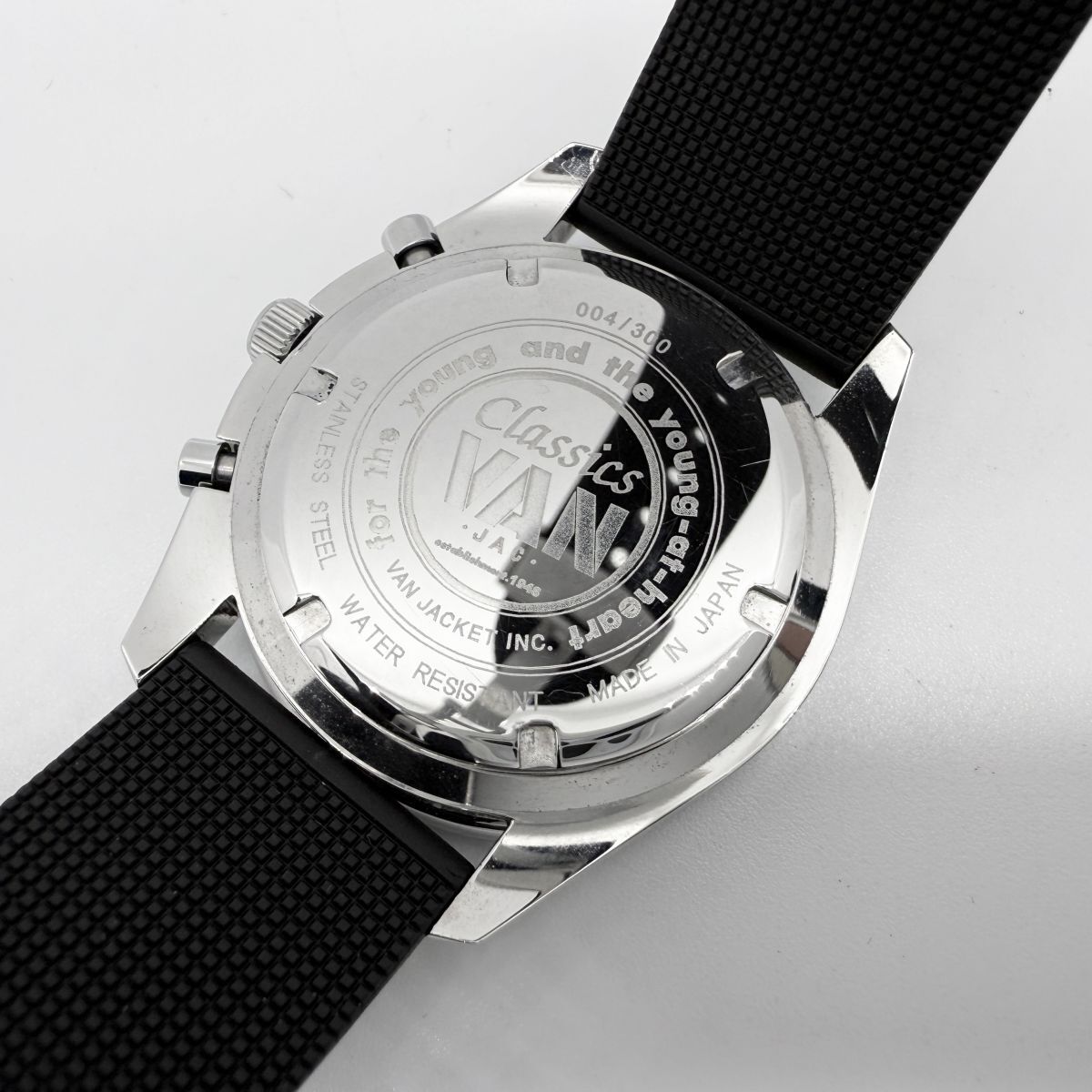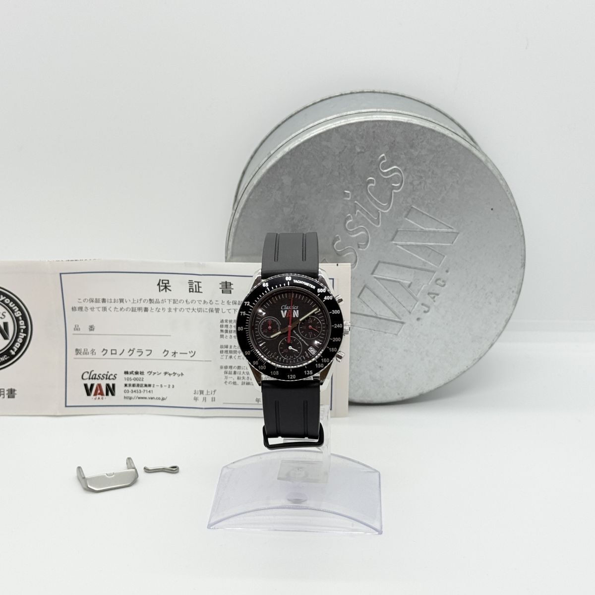 K7468 VAN Jacket ヴァンジャケット クロノグラフ 300本限定 LE MANS CLASSIC 黒 ラバー QZ メンズ 稼働品 箱 ギャランティ 尾錠