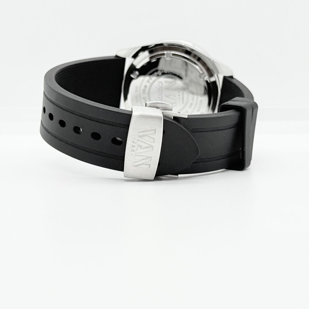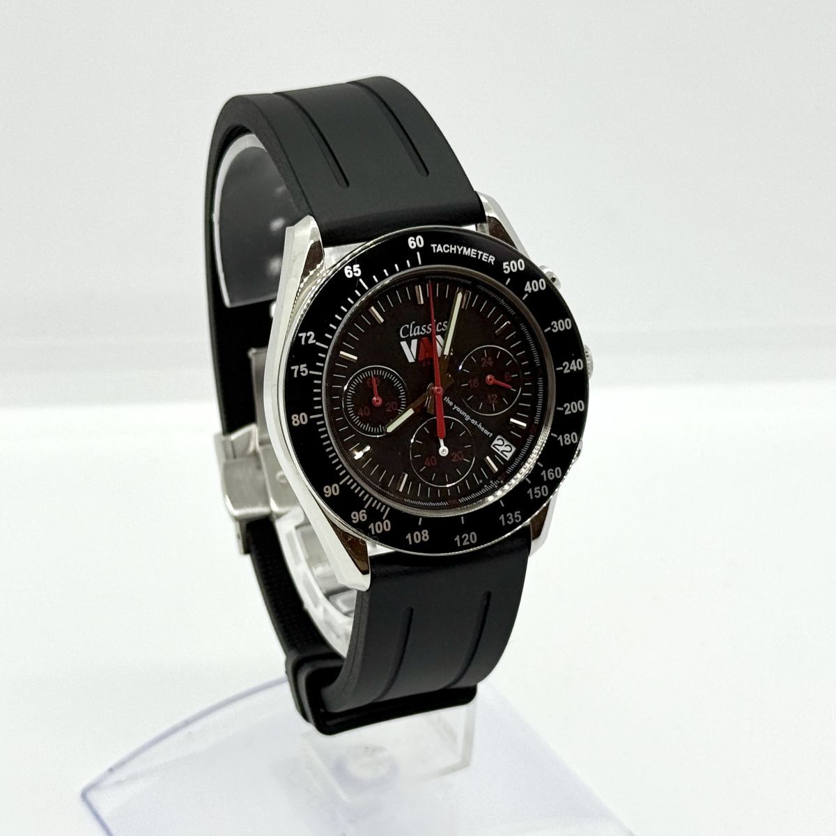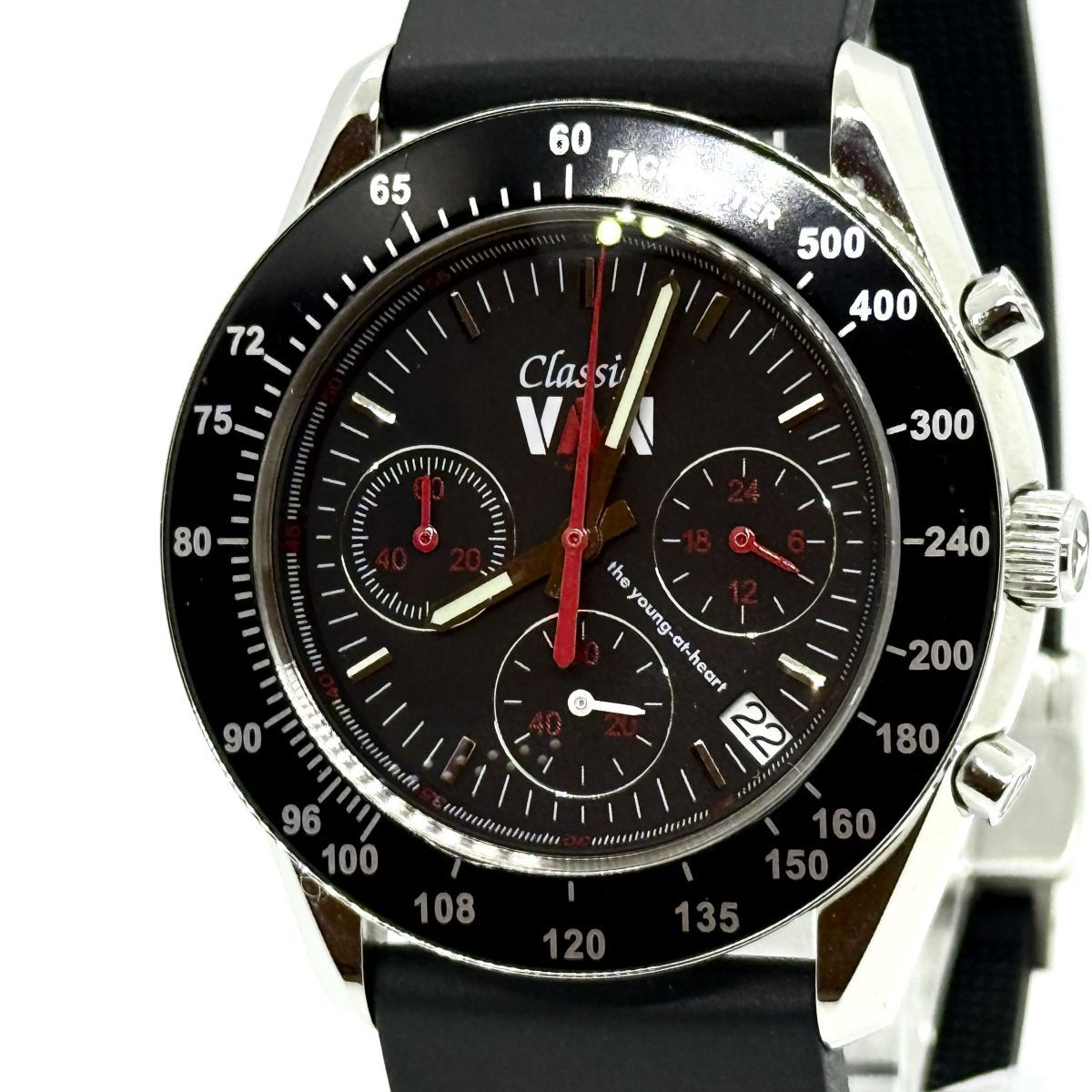 K7468 VAN Jacket ヴァンジャケット クロノグラフ 300本限定 LE MANS CLASSIC 黒 ラバー QZ メンズ 稼働品 箱 ギャランティ 尾錠