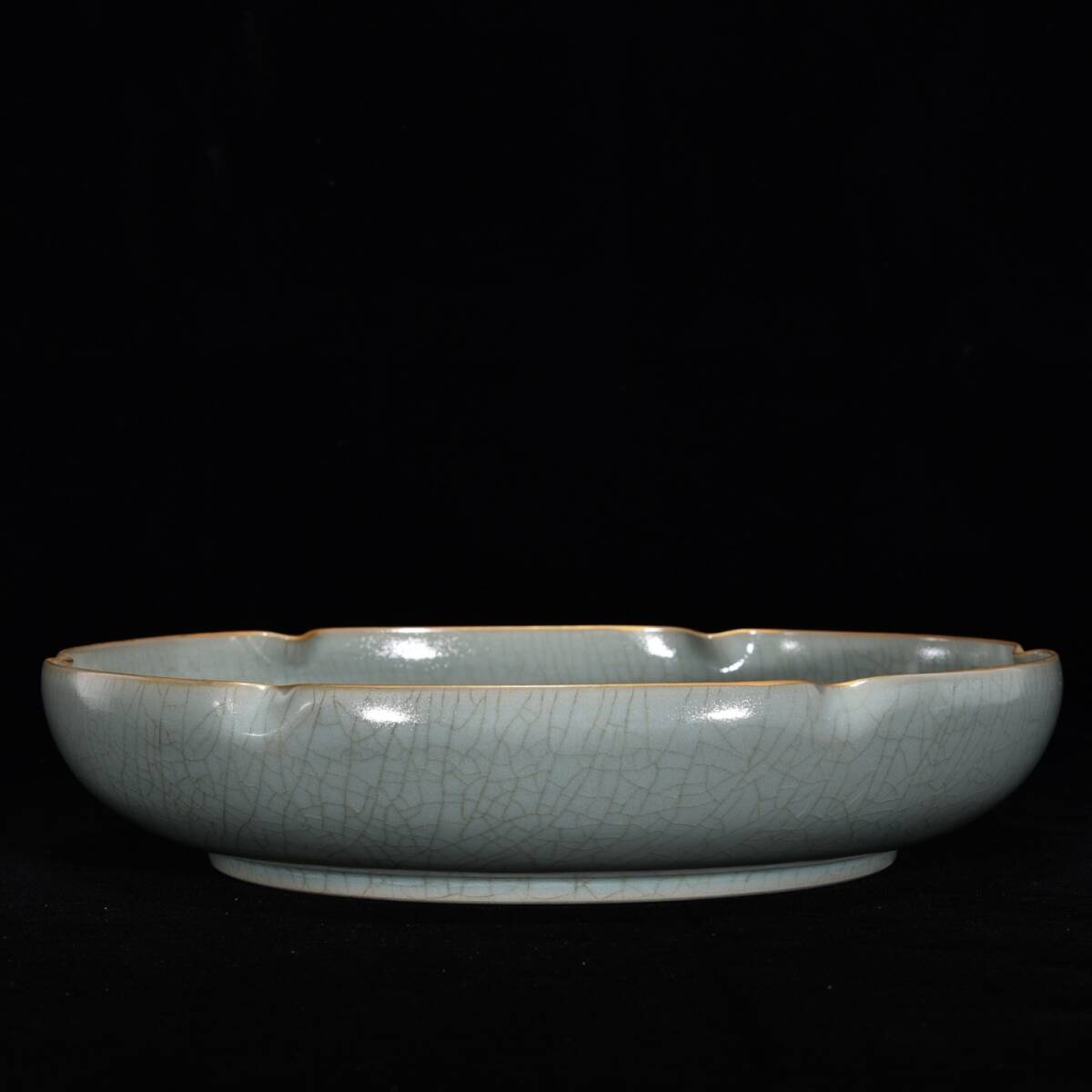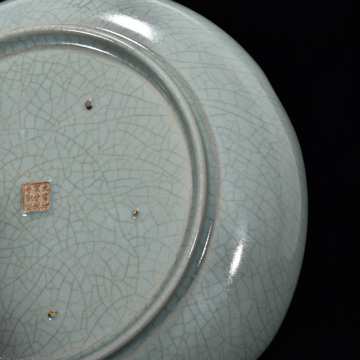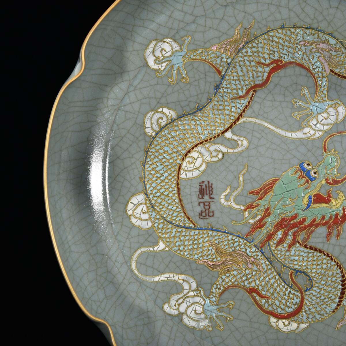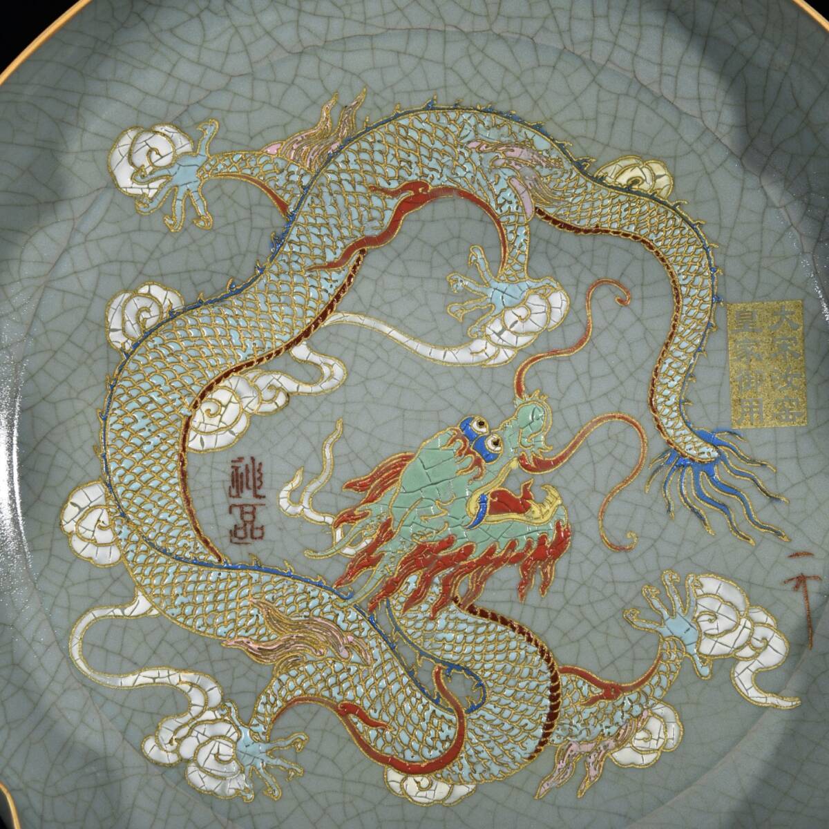 唐物 宋 汝窯 絵彩龍紋 葵口皿 陶芸 古陶磁器 中国磁器 極細工 中国古玩 骨董品 古美味 D69