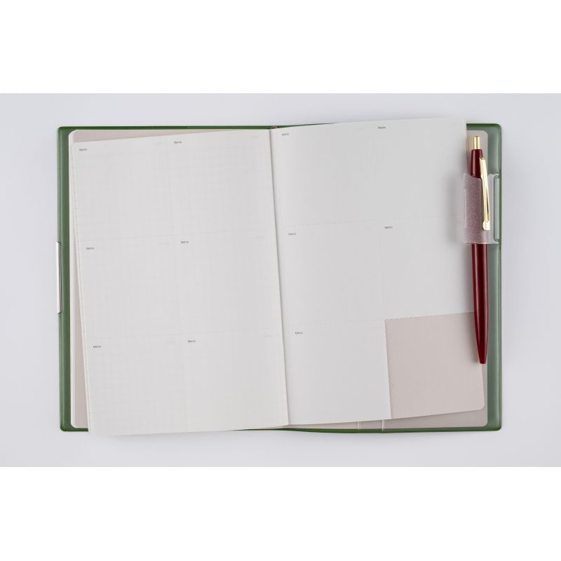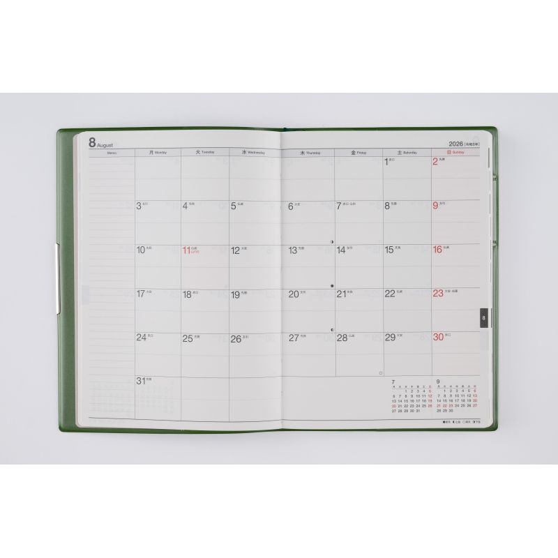 【月間予定表】カレンダーのような感覚で使え、週ごとの予定が把握しやすいブロック式。左端にはメモスペース、右下には前次月のカレンダーが付いています。