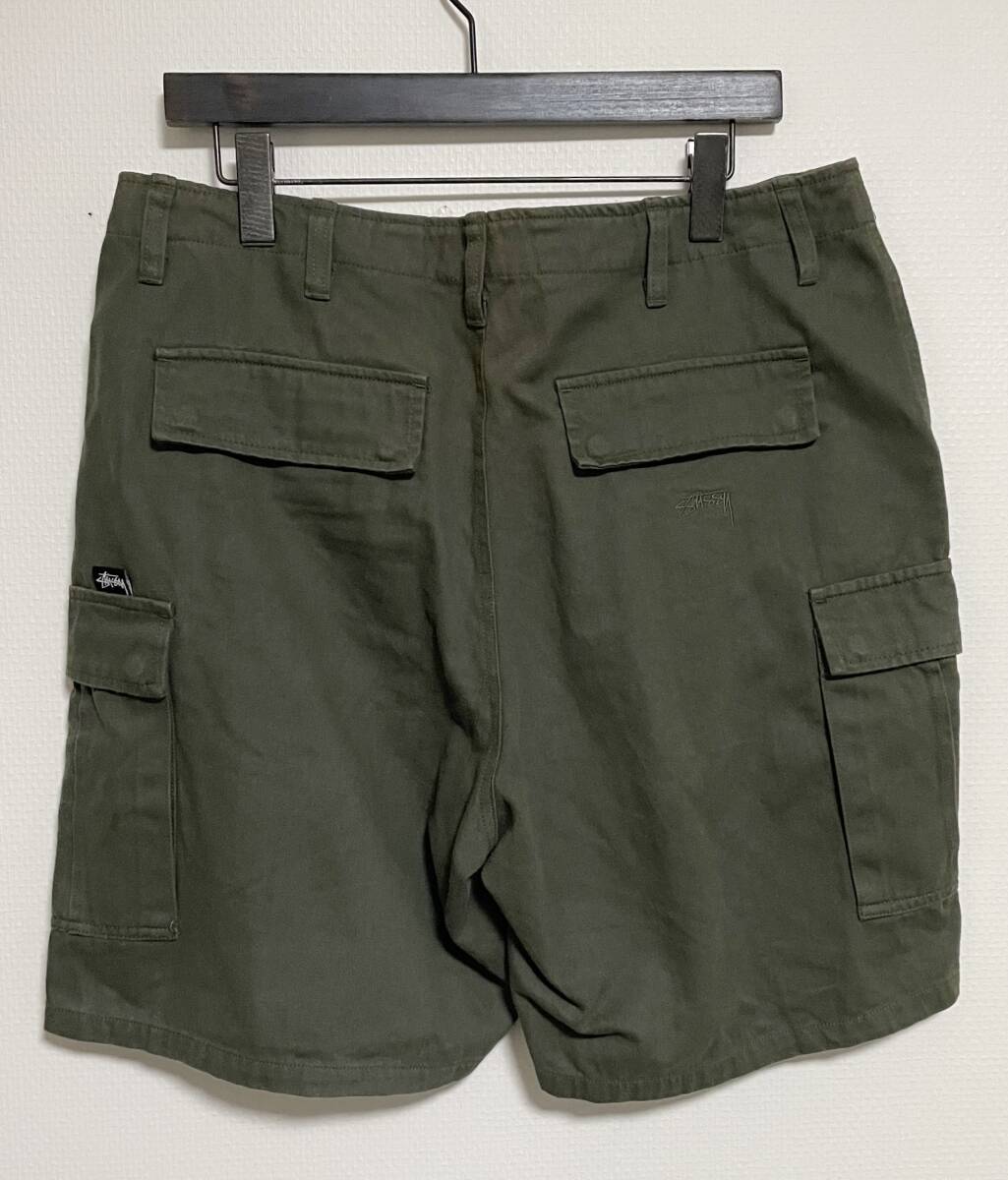 Stussy ステューシーミリタリー 6ポケット カーゴショーツsize 34 (L〜XL相当)実寸は以下となります。ウェスト 約 94cm股上 約 32cm股下 約 20cm裾幅 約 29cmワタリ約 31cm多少の誤差はご了承ください。状態 : 数年前購入後はワンシーンほど使用並び洗濯にしたのち大切に自宅保管していた物になります。使用感も少なく8/10くらいのコンディションで個人的にはまだまだ履いていただけるアイテムです。ただしUSEDと言う性質上古着慣れしていない方や神経質な方のご購入はお控えください。#ミリタリー #ワークパンツ |