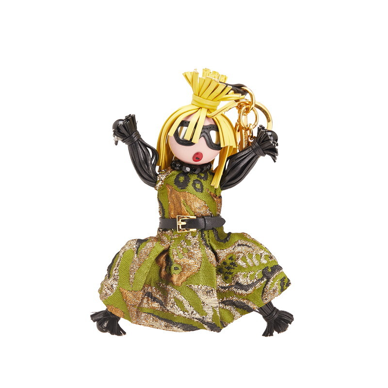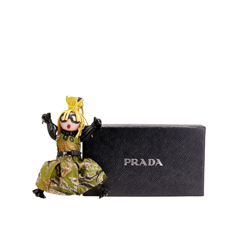 プラダ Jasmine Brocade トリックジャスミン キーリング チャーム 1TL171 グリーン マルチカラー レザー レディース PRADA 【中古】