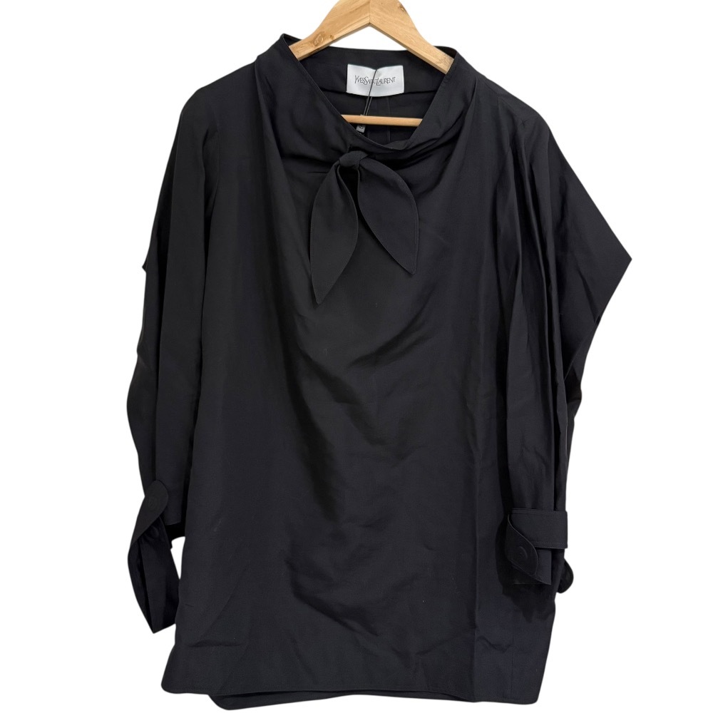商品名:YVES SAINT LAURENT イヴサンローラン シルクブレンド 長袖 プルオーバー デザインブラウス 38 ブラック