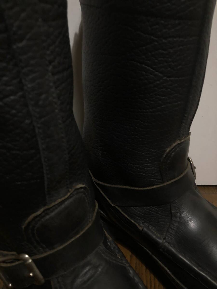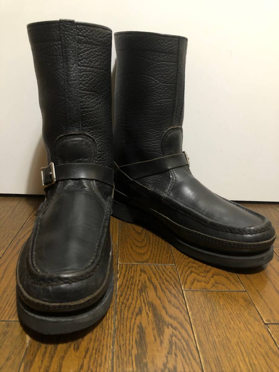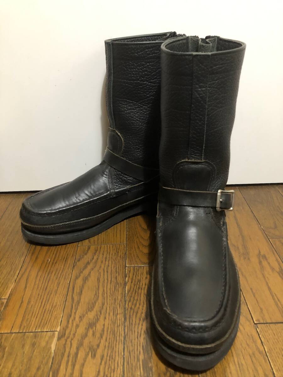UNUSED別注ラッセルモカシンゼファートリプルヴァンプ。 サイズ9E。正規店購入の本物です。 UNUSEDがラッセルに別注したゼファーで、シャフトにシボ感があるレザーです。アッパーの艶感がかっこいいです。トリプルヴァンプなので迫力がありかなりかっこいいです。なかなか出ないブーツかと思います。使用感、しわ、傷、汚れ、などありますが、大切に履いていたのでまたまだ味が出ていくかと思います。あくまで個人の品で、汚れや傷やスレはあるかもしれません。コレクション整理のため出品させて頂きます 。ラッセルなので元から傷やスレやへこみなどあったり、糸飛びなどある場合があります。1度人の手に渡っています。基本ショップリサイクル紙袋で包装致します。大変申し訳ないのですが状態に関しては個人差があります。新品では無いusedブーツですので汚れはあるかと思います。個人差にご理解のない方、 臭いなど気になる方、インソールなどの汚れや傷が気になる方、傷などをご自分での判断で思い込みをしている方、ソール汚れやミッドソールなどの浮きが気になる方、包装の丁寧さや拘りのある方、細かい事が気になる方、神経質な方また、取引を急がせる方、見落とした傷汚れなどに敏感な方はご遠慮ください。評価の悪い方はこちらで入札を取り消す場合がございます。24時間以内にお返事が頂ける方、3日以内に迅速にお振込が出来る方ご入札お願い致します。あくまでも自宅保管です。以上ご理解の上ご入札お願い致します。ノークレーム、ノーリターンでお願いいたします。