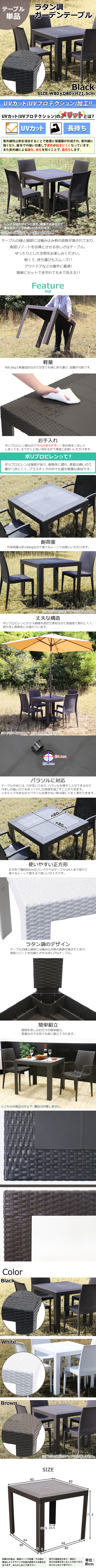| 商品名 | 送料無料 ラタン調 ラタンテーブル ガーデンテーブル 正方形 幅約80cm 耐荷重約180kg UVカット ポリプロピレン製 PP 軽量で持ち運び簡単 ラタン調ガーデンテーブル バリ風 庭 ガーデンファニチャー アウトドアテーブル パラソル使用可 屋外用 テラス バルコニー rtntablet |