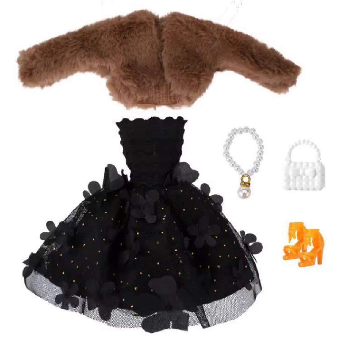 ファーコート・ワンピースドレス・ネックレス・バッグ・靴のセットです