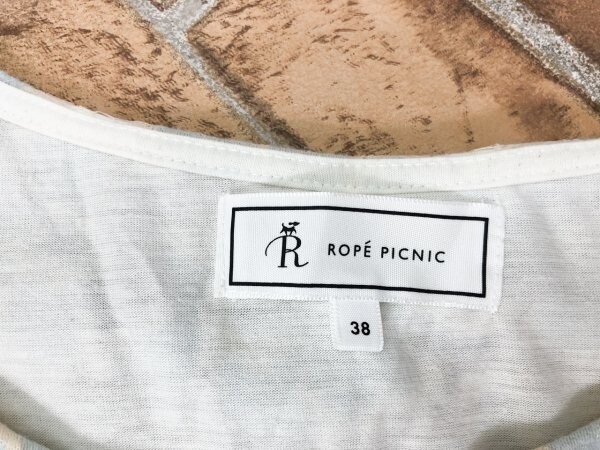 Rope Picnic ロペピクニック レディース 柄 シアー 裏地付き 半袖カットソー 38 ベージュ薄い水色