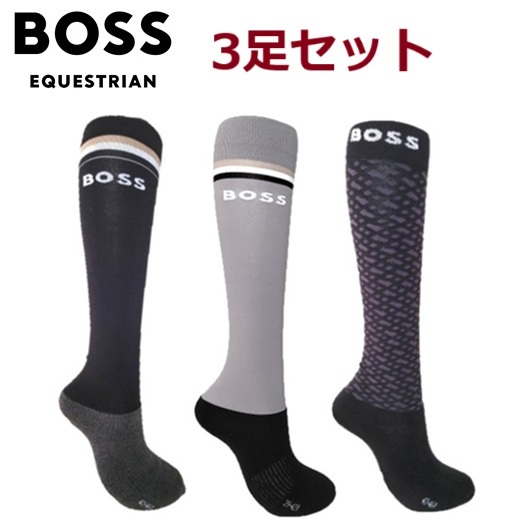 BOSS ボス 3足セット ライディングソックス 乗馬靴下 乗馬 馬術 乗馬ウェア
