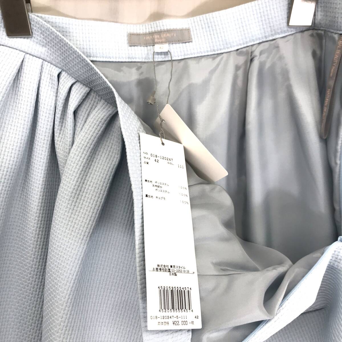 EZ3516●natural beauty purpose : タグ付きフレアスカート●42●水色 定価¥22,000+tax 日本製 大きいサイズ 東京スタイル