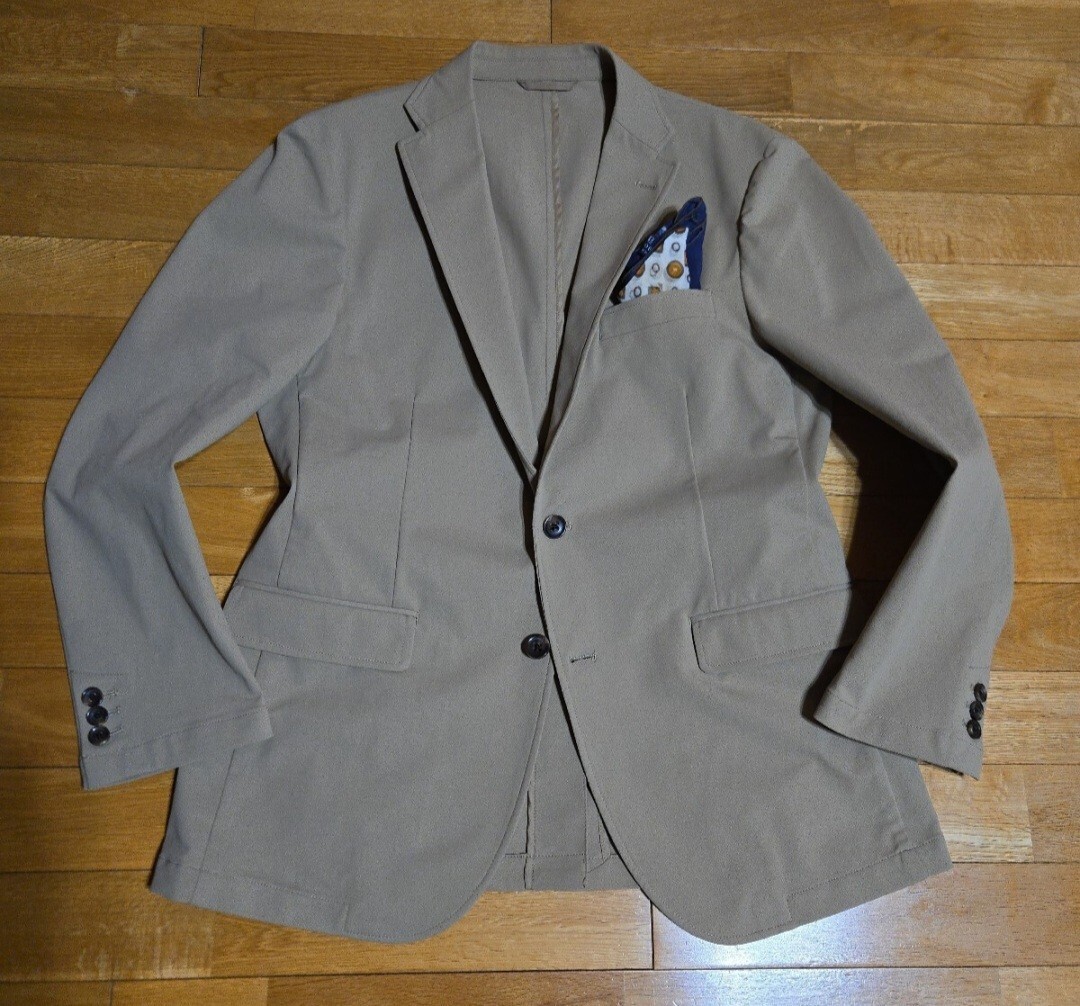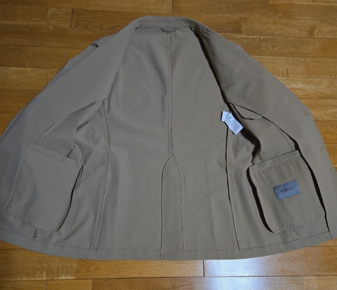 シルエットは英国調の作り、シャープでスマートなオーソドックスなシルエットで、素材感のお色もこれからの時期に活躍しますベージュ、裏地はアンコン仕立てで春先、やや通年で使用して頂けます。あらゆるシーンで合わせやすく、大人のスリムシルエットです。シャープでクラシックなシルエット、これからの時期にも重宝する上質ジャケットでお勧めですよ。