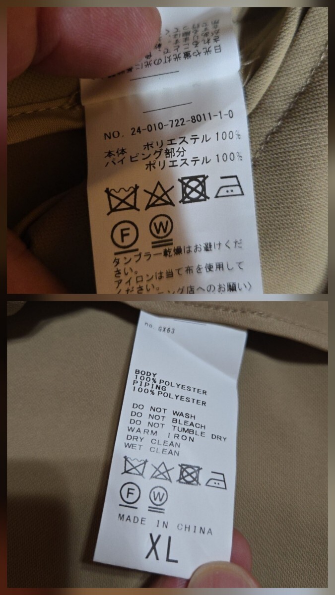 サイズ表記はXL 実寸サイズ /肩幅-46.5cm/身幅-54.5㎝/袖丈- 61.5cm/着丈-71.5cm/