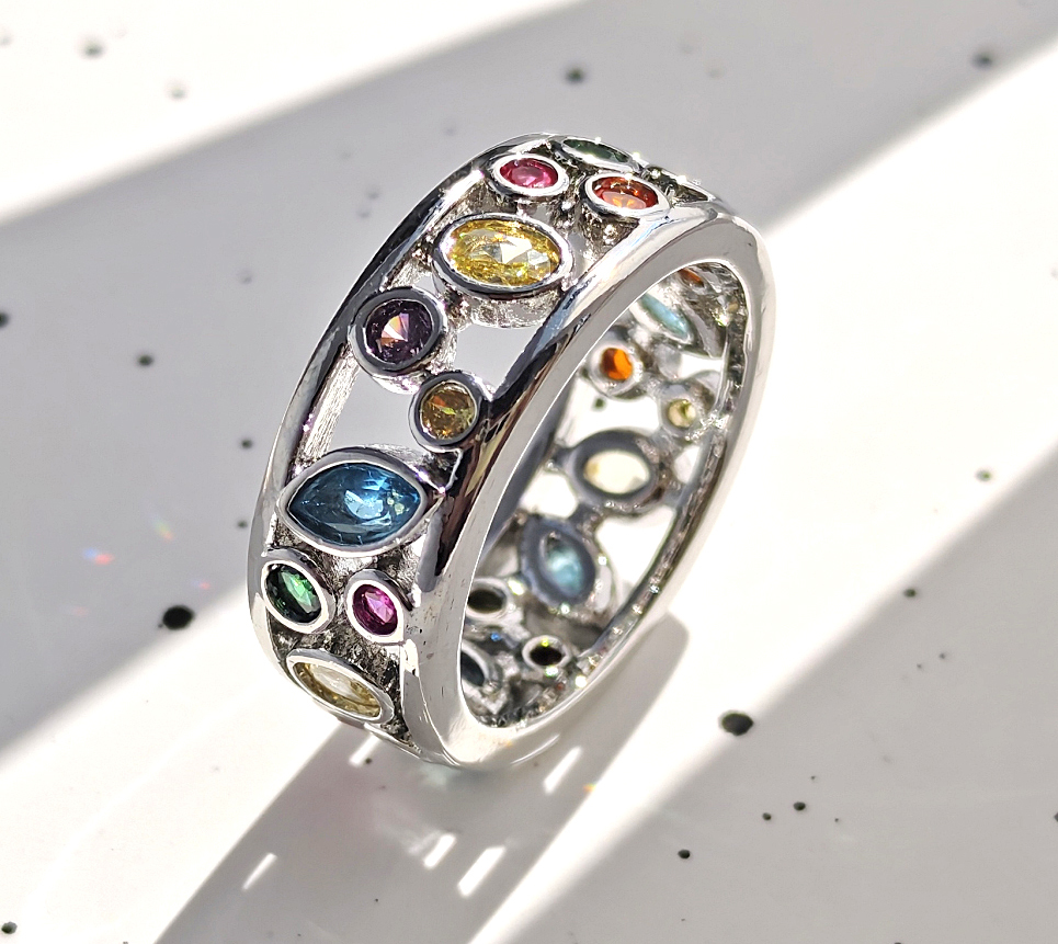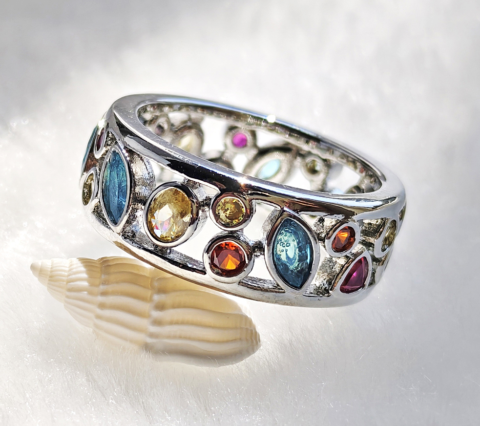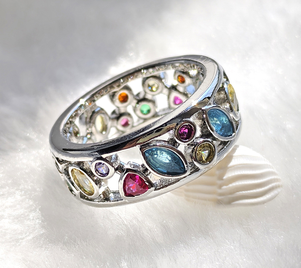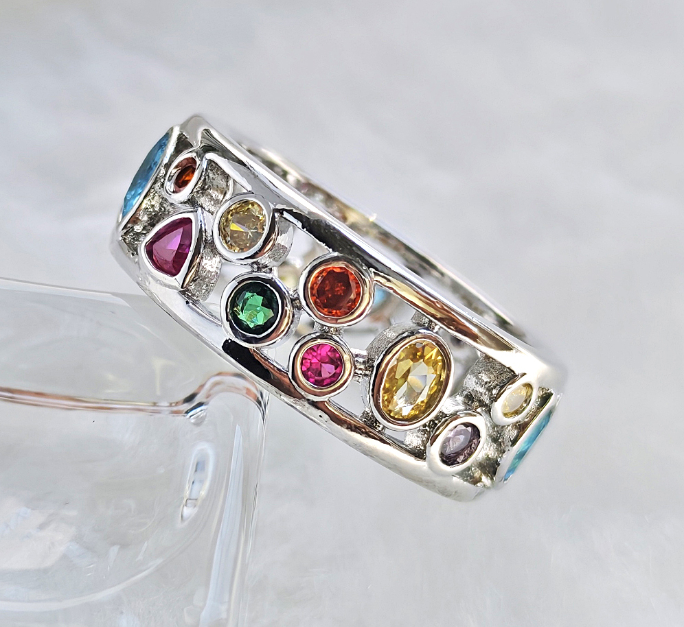N250707◆Bigstone◆【魅力独創デザイン】多彩の宝石*キラキラ輝く*ファッションなリング*15号