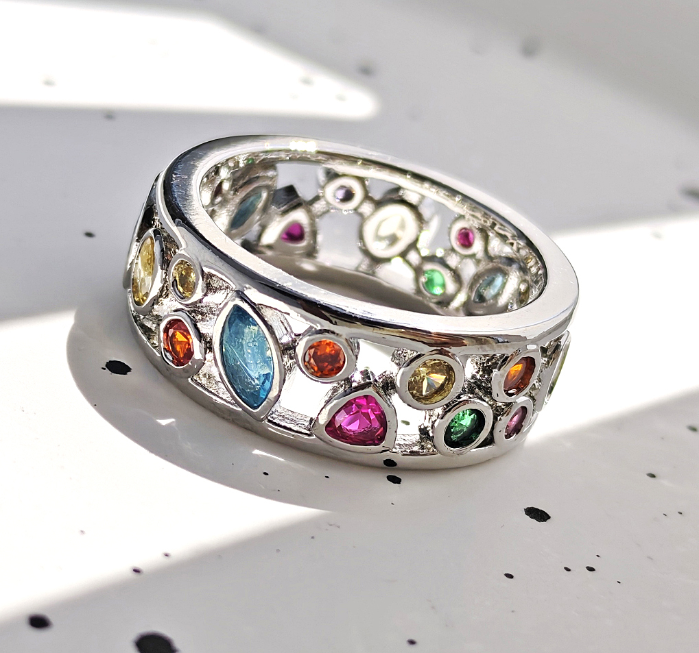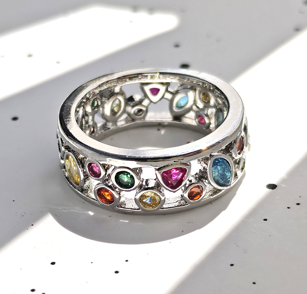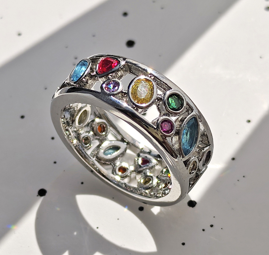 N250707◆Bigstone◆【魅力独創デザイン】多彩の宝石*キラキラ輝く*ファッションなリング*15号