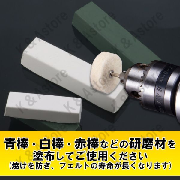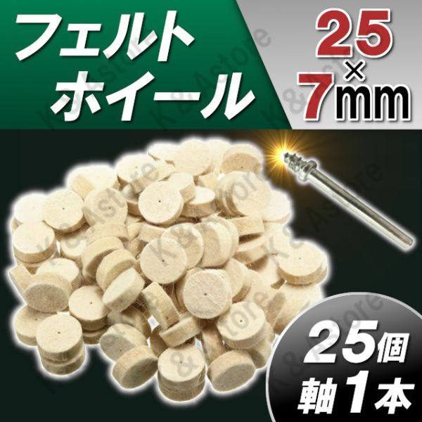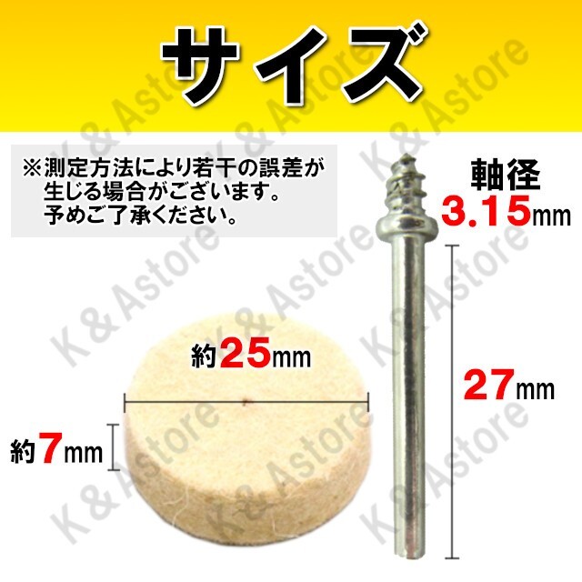 軸付きフェルトホイール 金属磨き 鏡面仕上げ バフ掛け 研磨 ミニルータービット ホビー リューター 電動ピンバイス ドリル 円筒25㎜ 25個