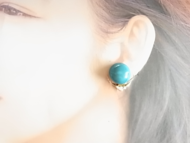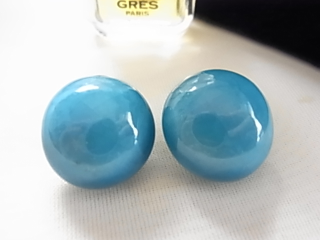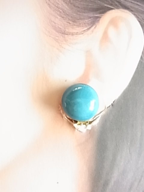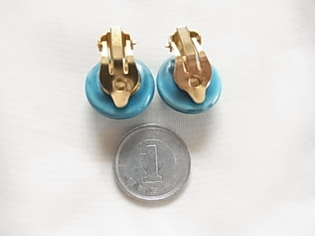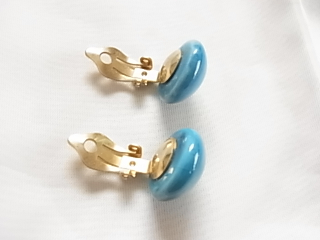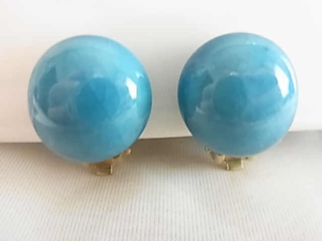 ビンテージ/ヴィンテージ 焼き物系 円形ラウンド形 あさぎいろ 浅葱色トーン 昭和レトロの素敵な色味 和装にも素敵なイヤリング◆