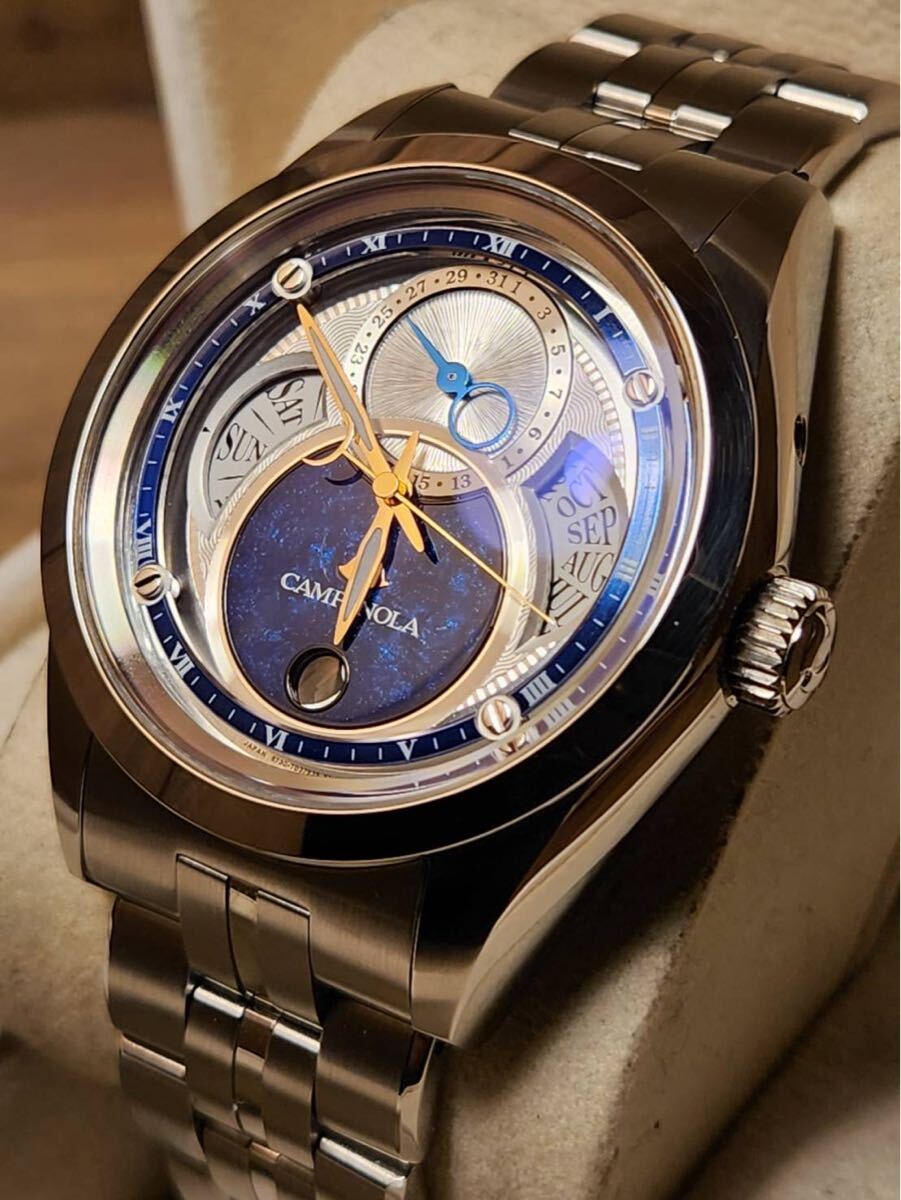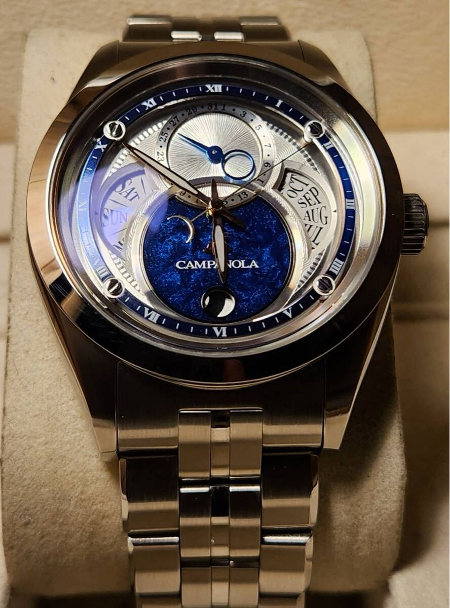 カンパノラ初のフレキシブルソーラームーブメントを採用した「紺瑠璃(こんるり)」。