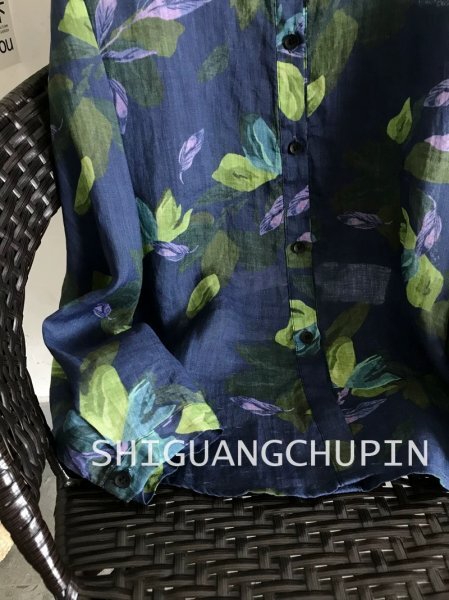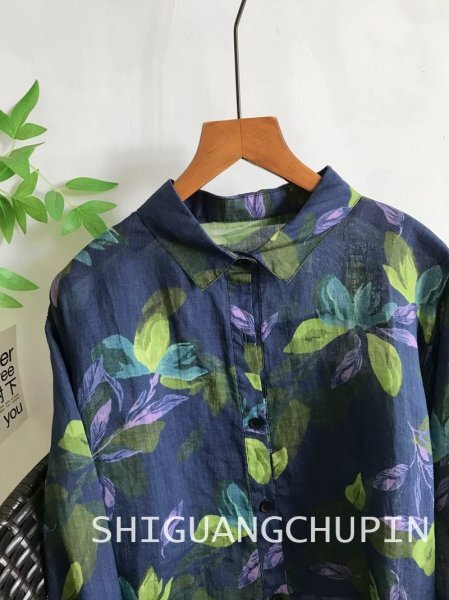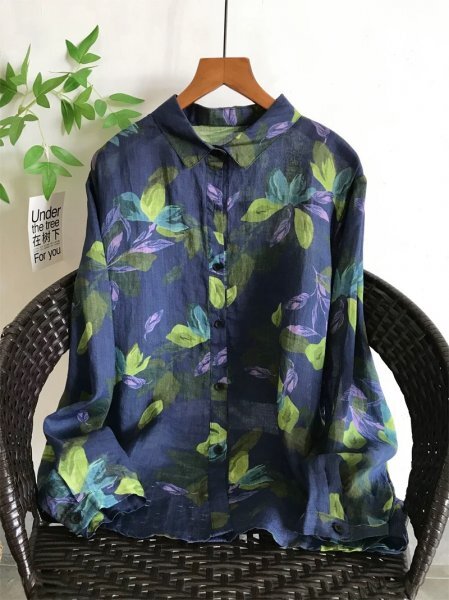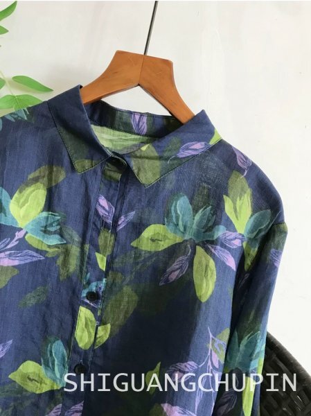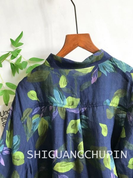 yh 2507 フリーサイズ ワイシャツ チュニック トップス 麻100% 大人可愛 ナチュラル サラサラ 通気性肌触り抜群 オシャレ プリント花柄8