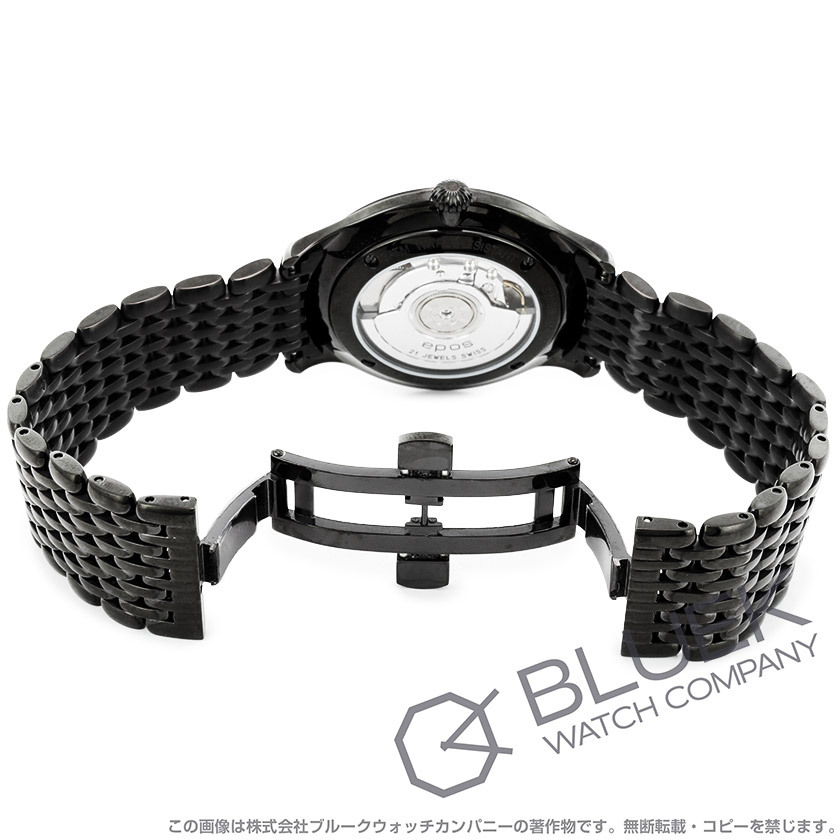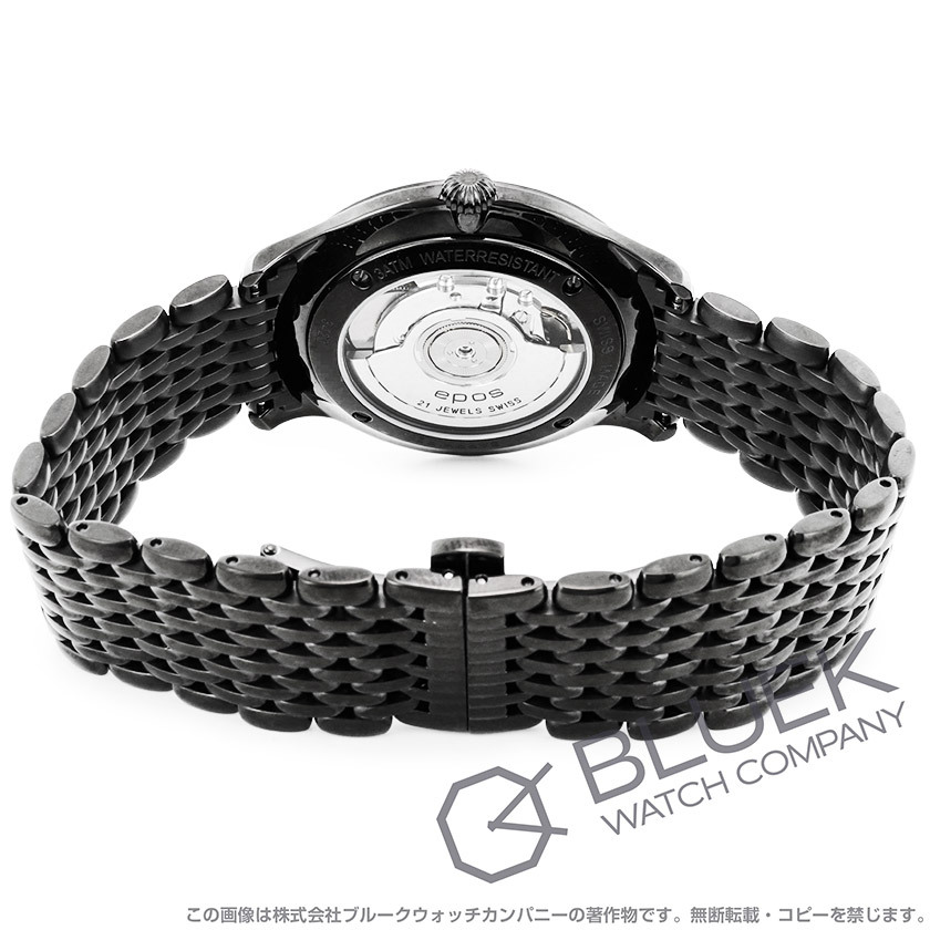 | 艶ありのブラックステンレスケース・艶ありのブラックステンレスベゼル・ブラック文字盤・シルバーの指針・バーインデックス・艶ありブラックの11連ブレス・プッシュ式の両開きバックル・バックスケルトン・裏蓋にシリアルナンバー 【入荷時期によりバックルの仕様、振り子部分のブランドロゴのカラーが異なる場合が御座います】 |